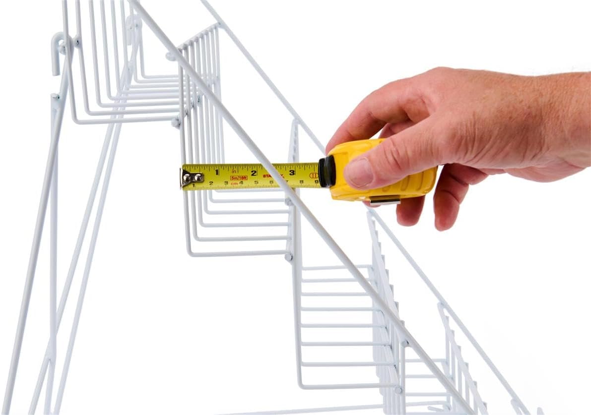 Displays2go Wire Magazine Rack with 6 Open Tiers, Holds Both Magazines and Brochures, Includes Sign Channel at the Front - White Wire