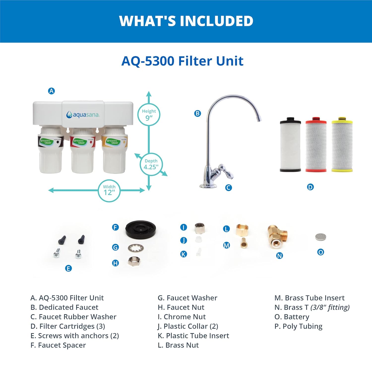 - : Included Components filters, housing, faucet, install kit