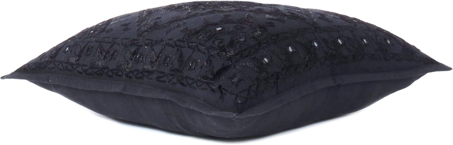 Eyes of India Embroidered Decorative Boho Throw Pillow Cover with Mirrors, Handmade Bohemian Accent Cushion Case for Sofa Couch Bedroom Living Room (Black, 16" x 16")