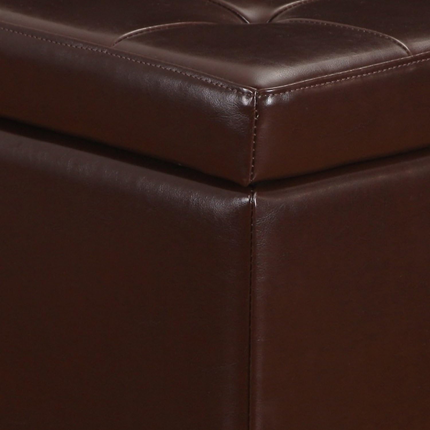 Adeco Bonded Leather Square Tufted Footstool, 18", Brown Storage Ottomans,