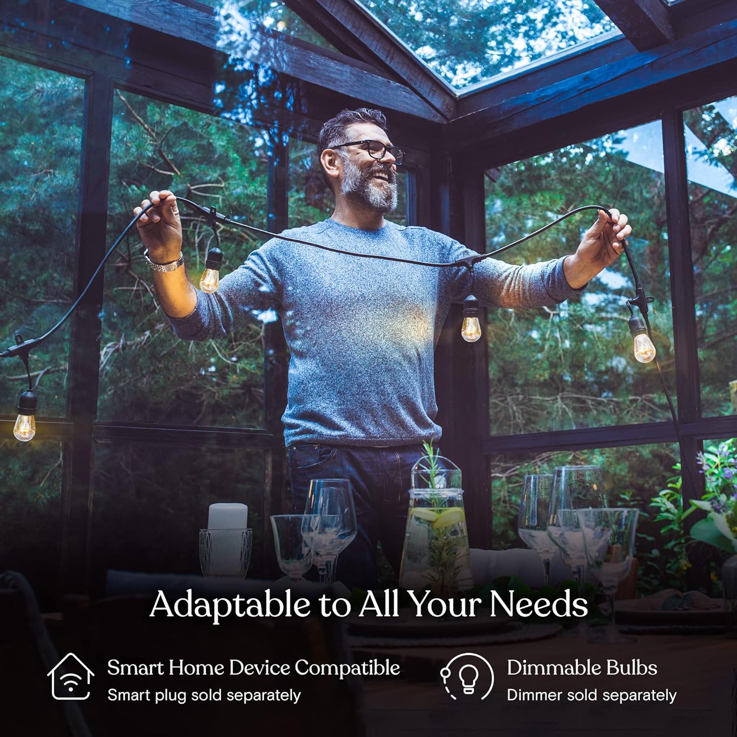 - Classic Cafe Ambience: Brightech indoor outdoor string lights use vintage Edison Bulbs. Install this hanging lights string with old-fashioned filaments to give off a warm, old-time glow so that you can come home after a busy day and enjoy your very own retreat. Make your pergola, porch or other space to be an enticing, relaxing and soothing retreat with Brightech dimmable incandescent outdoor lights.