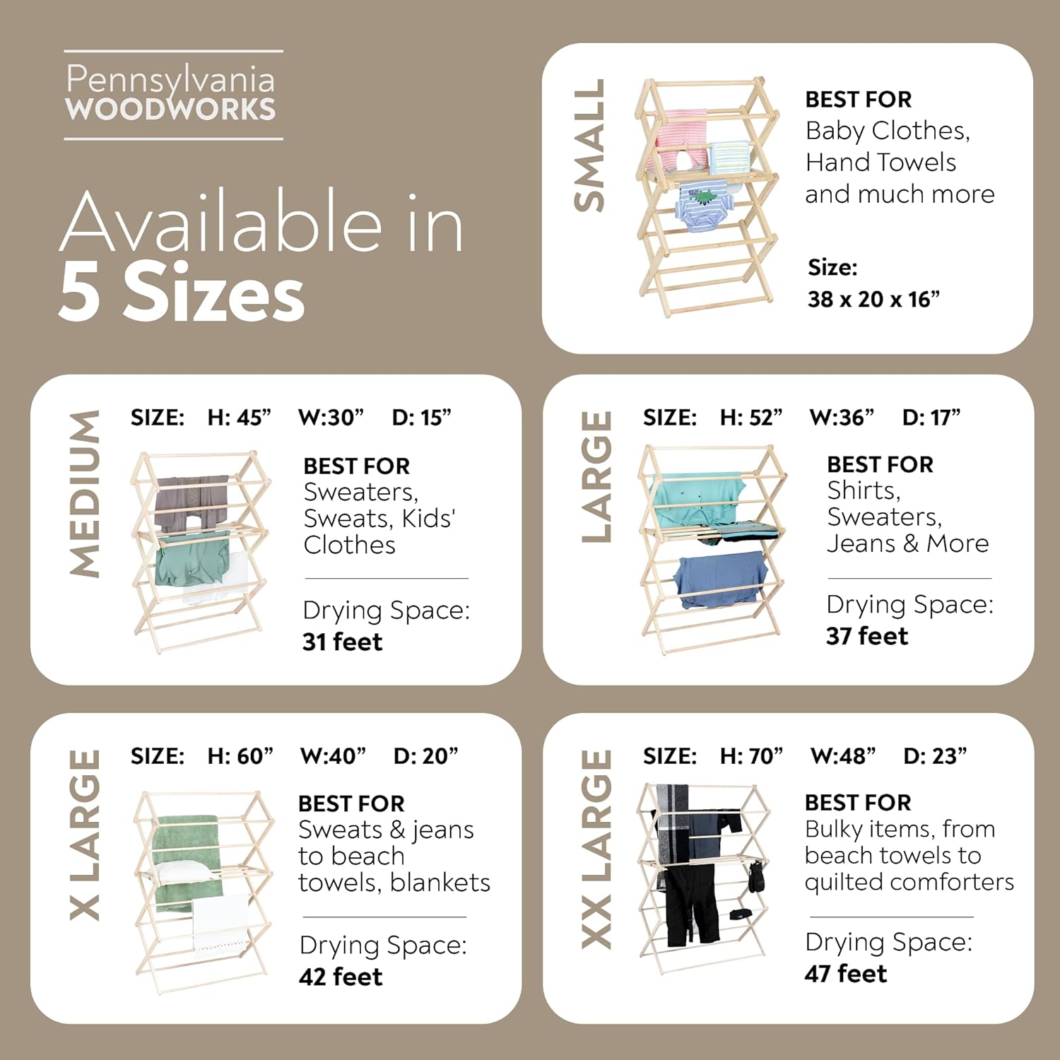 Pennsylvania Woodworks Clothes Drying Rack: Solid Maple Hard Wood Laundry Rack for Baby Clothes, Hand Towels, Delicates & More, Durable Small Folding Drying Rack, Made in USA, No Assembly Needed