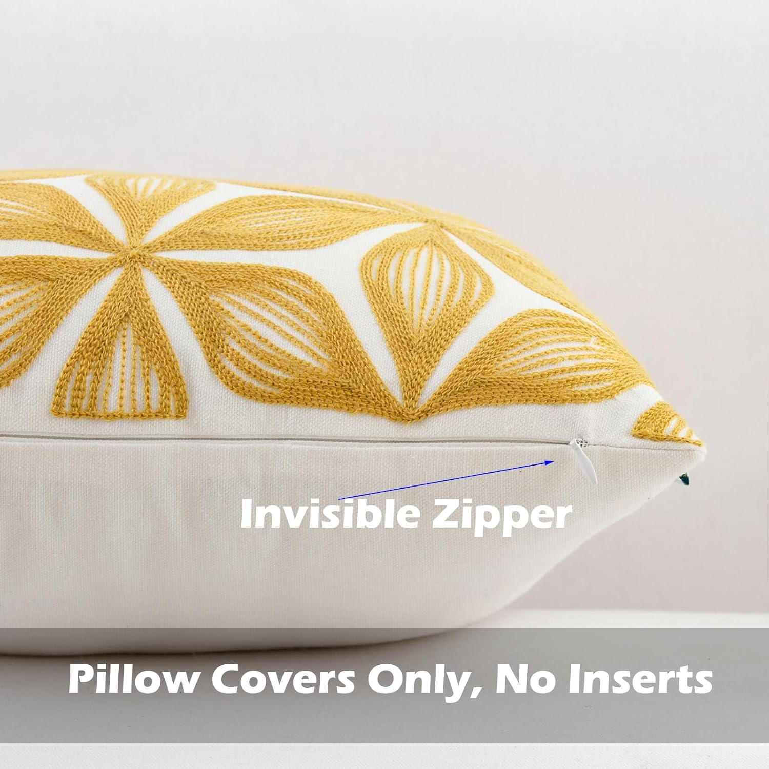 - Size & Material: This 18 x 18 inch (18 by 18) square throw pillow cover is made of 100% thick cotton canvas for durability. The crisp white fabric is soft yet sturdy, featuring beautiful single-sided embroidery for an elegant touch