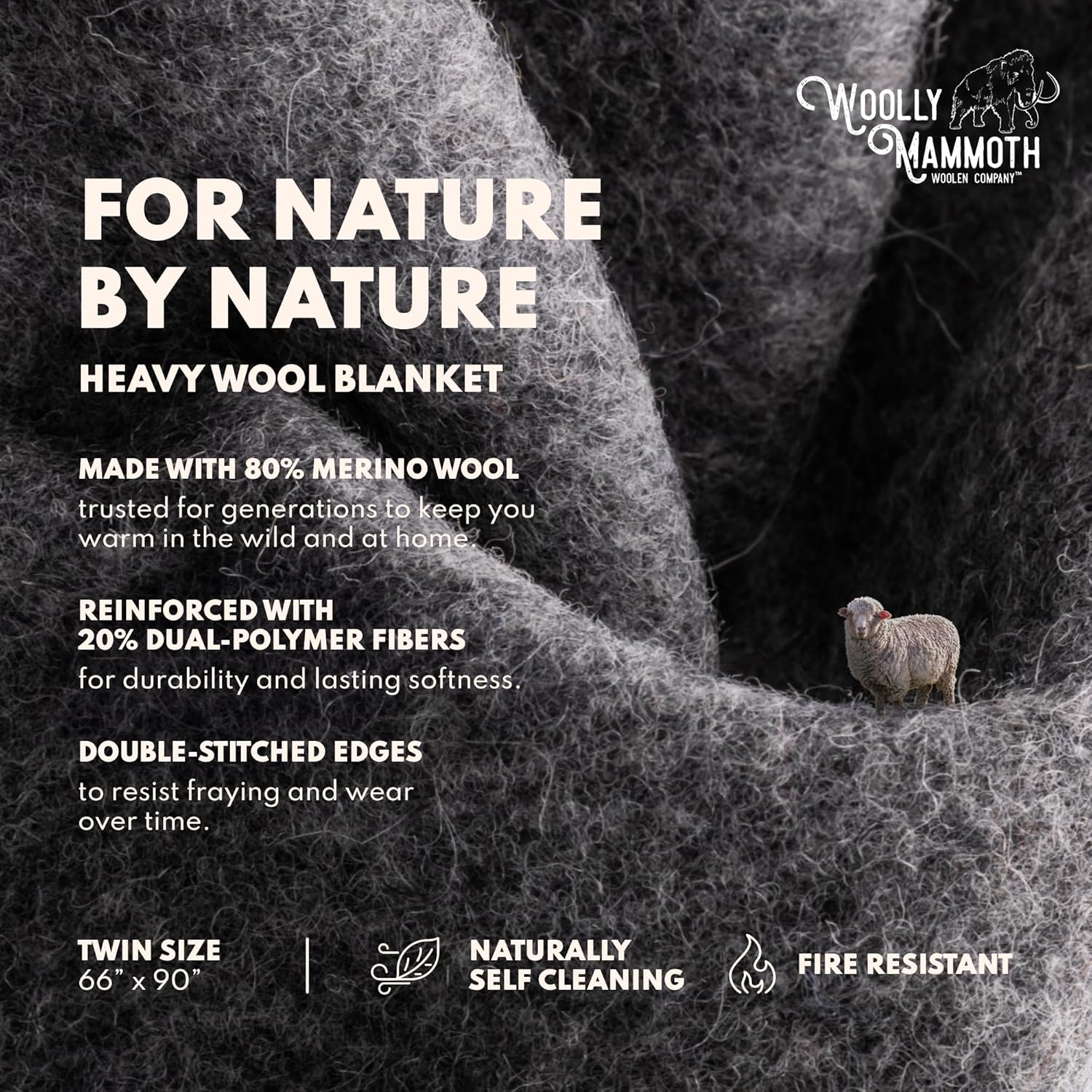 Woolly Mammoth Woolen Co. | Extra Large Merino Wool Camp Blanket | Perfect Outdoor Gear | Bedroll for Bushcraft, Camping, Trekking, Hiking, Survival, or Throw Blanket at the Cabin (Gray), 66" x 90"