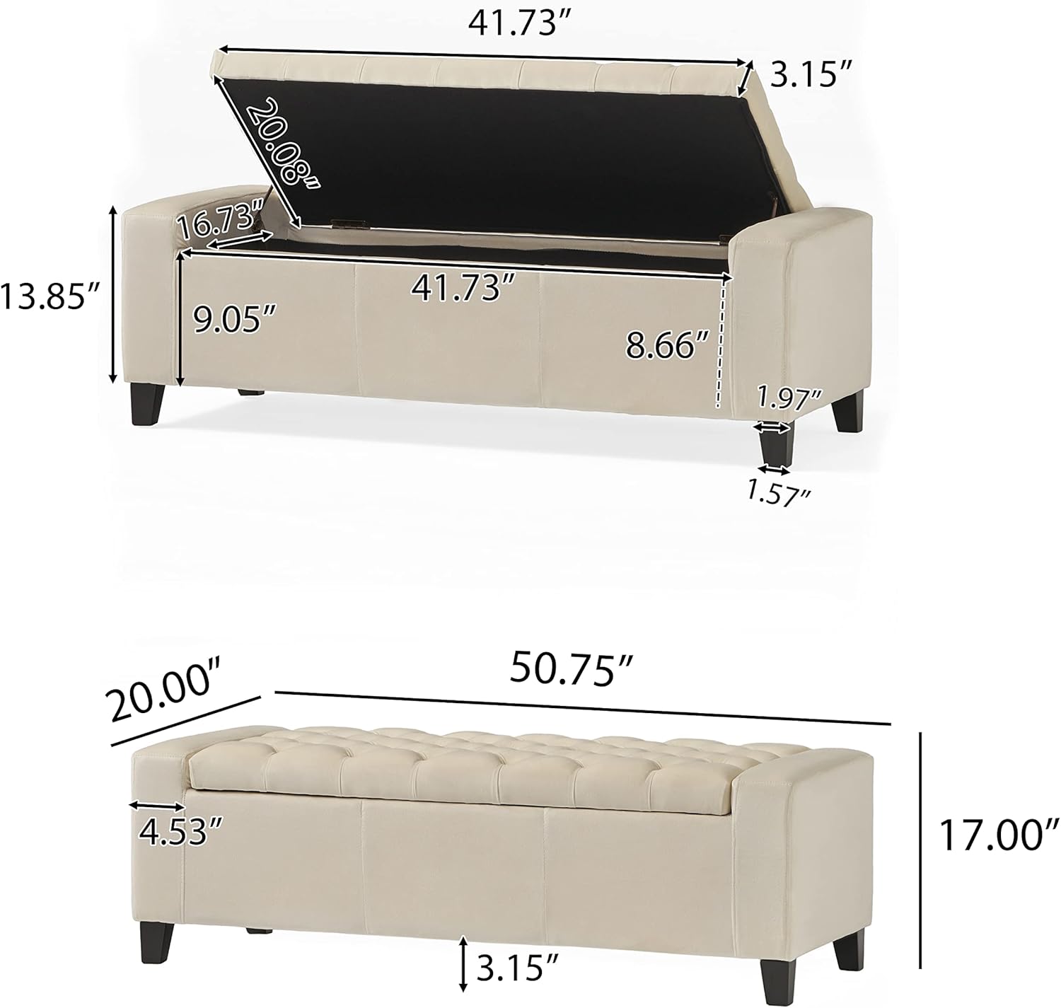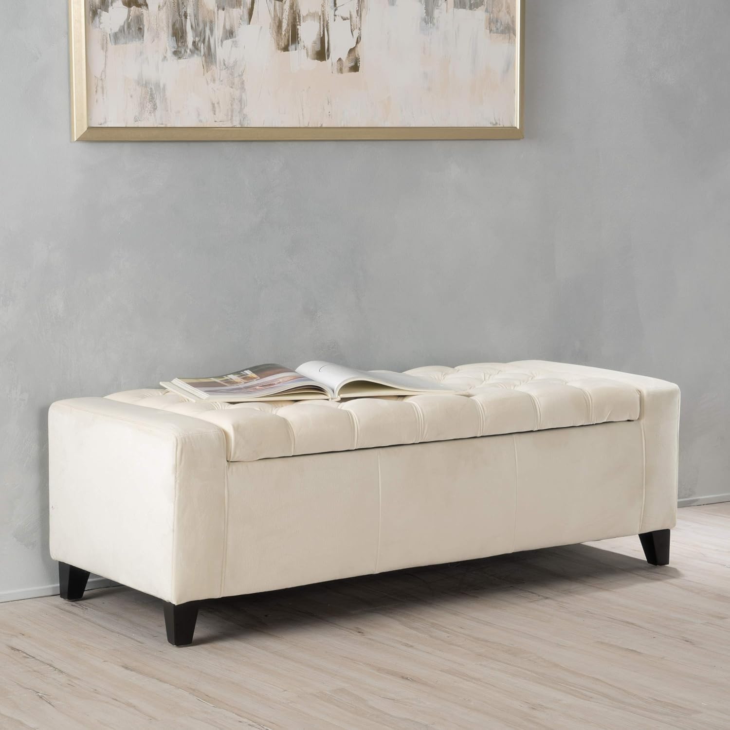 Christopher Knight Home Hikaru Velvet Storage Ottoman, Ivory 19.75”D x 50.00”W x 17.48”H