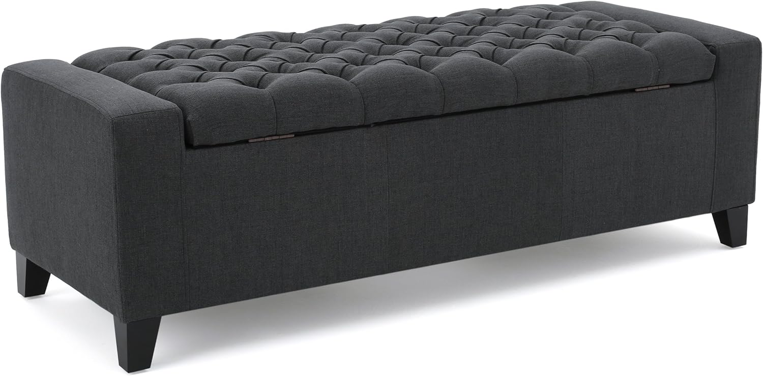 Christopher Knight Home Hikaru Fabric Storage Ottoman, Dark Grey Dimensions: 20.50”D x 51.00”W x 17.00”H