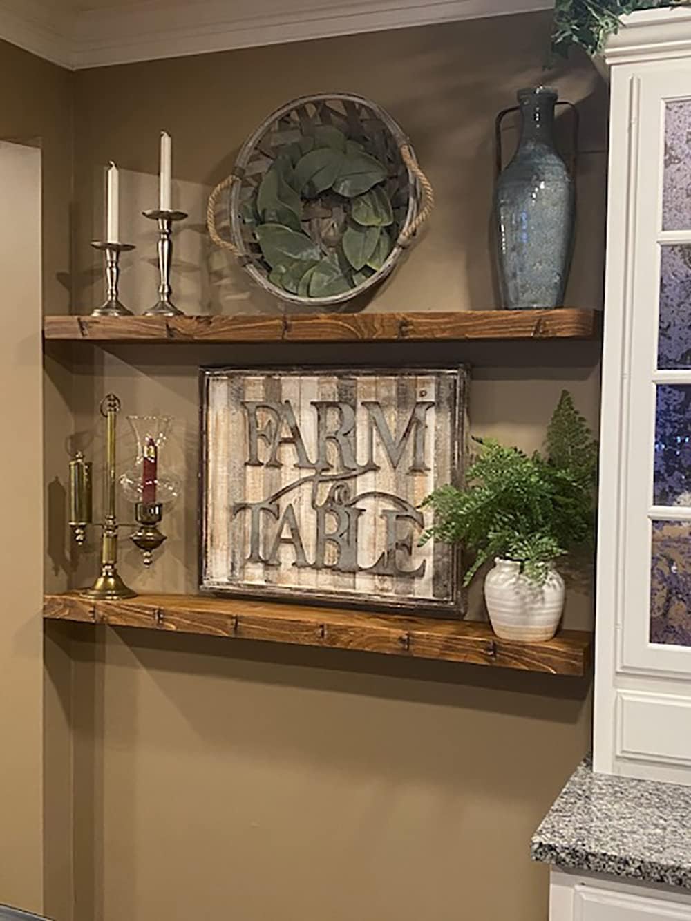 - PROUDLY MADE IS THE USA: Our products are proudly made in the USA, using sustainable Pine from Wisconsin and US steel, ensuring high-quality craftsmanship and supporting local industries. Trust in our commitment to excellence and enjoy the benefits of investing in American-made solid wood floating shelves. Recommended Weight Capacity 18” – 30” shelf | 30 pounds 36” - 54” shelf | 45 pounds 60” – 72” shelf | 50 pounds