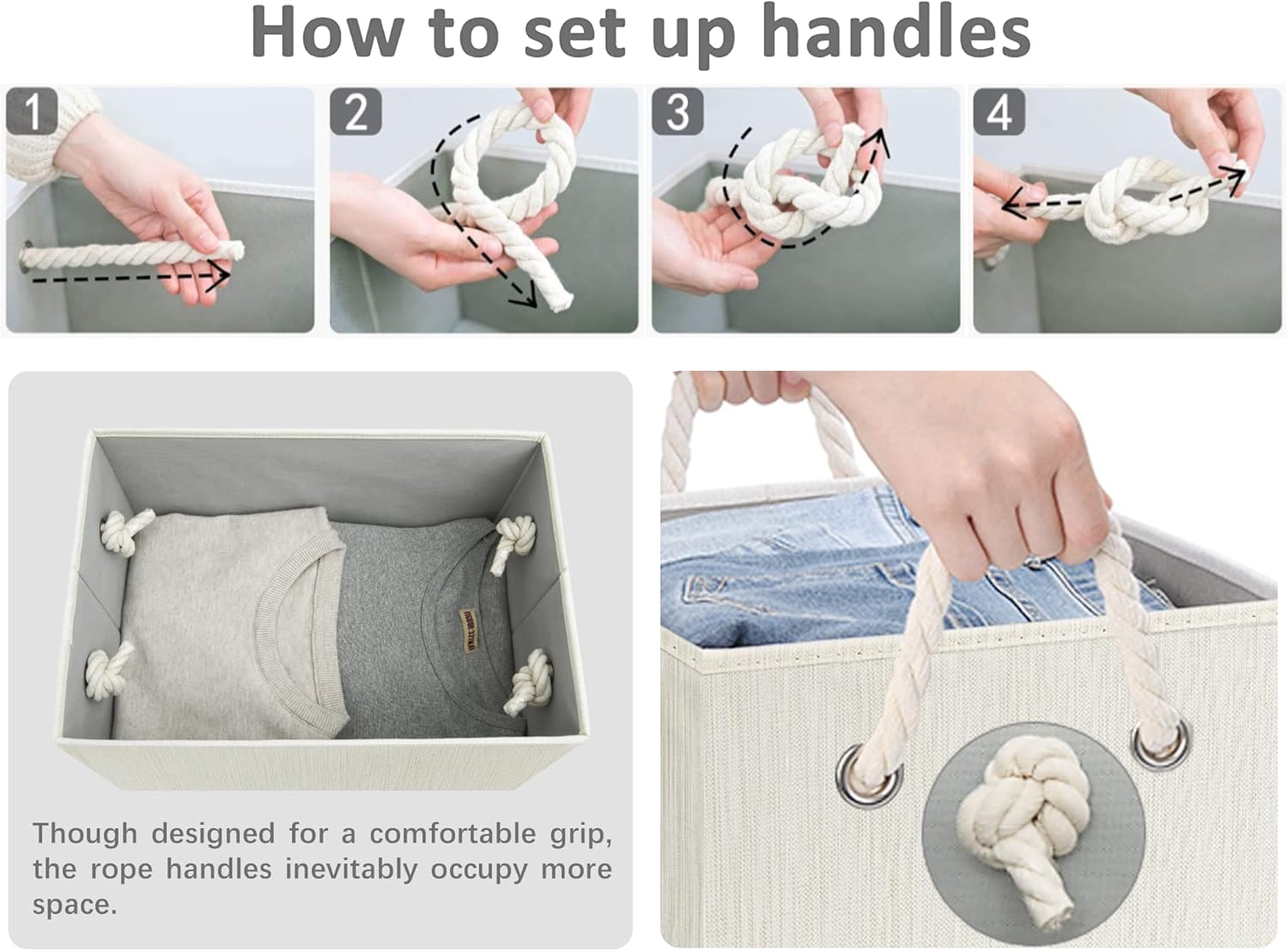 - The storage basket with 2 soft rope handles can support a weight of up to 30 pounds.