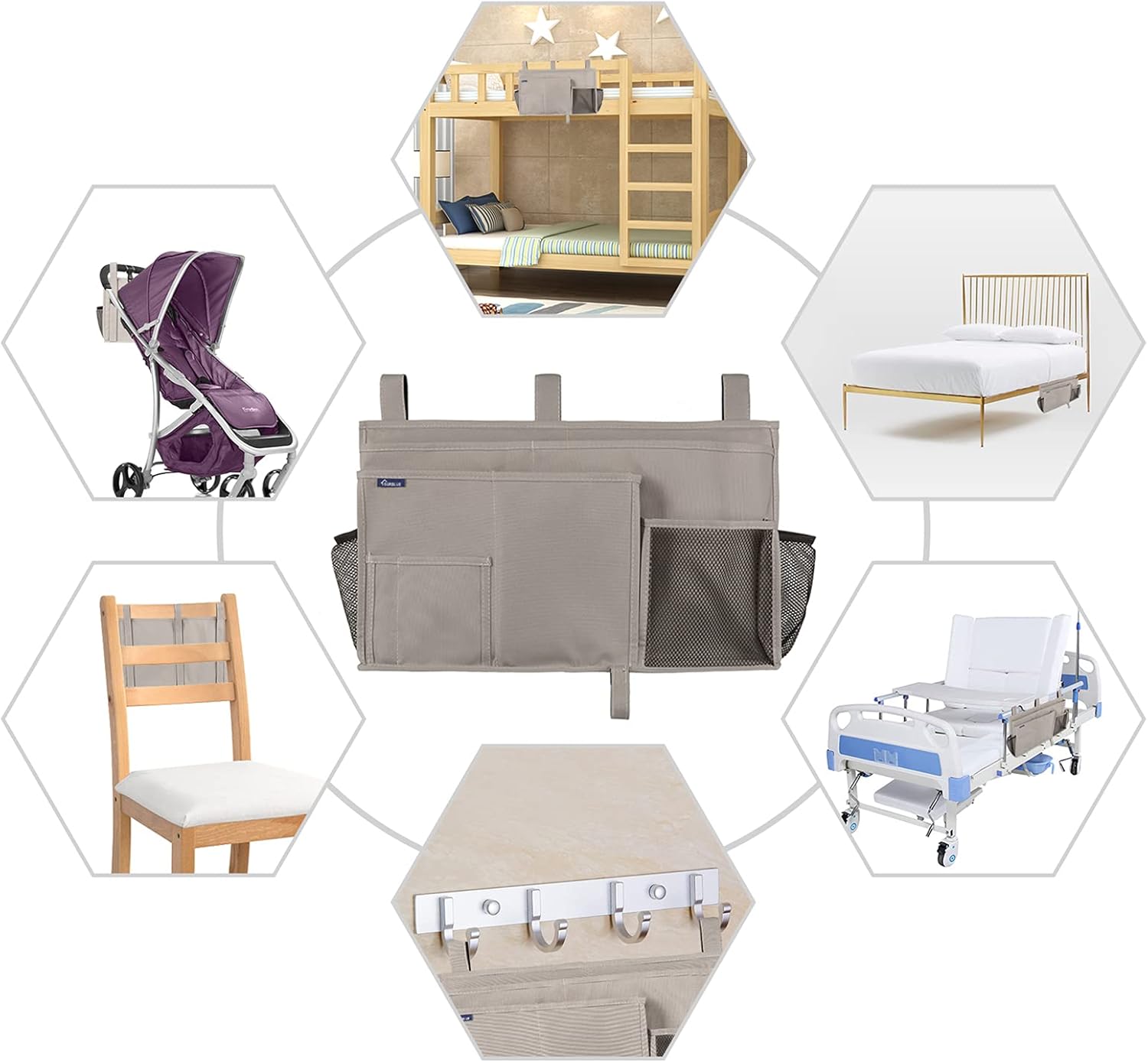 - Multi-Purpose: The bedside organizer is suitable for kid beds, top bunk beds, chair arms, and baby strollers, a good choice for RV, home, hospital, living room, or college dorm.