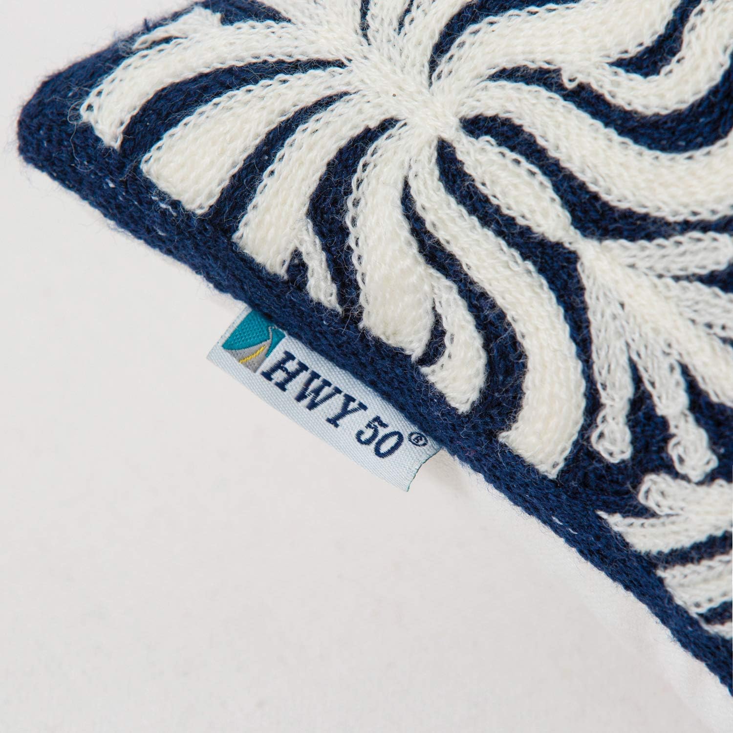 HWY 50 Navy Blue Decorative Lumbar Pillow Cover Rectangle 12x20 Inch (1 Piece), Embroidered Cotton Farmhouse Cushion Cover Pillow Case for Sofa Couch Living Room Bed, Minimalist Floral
