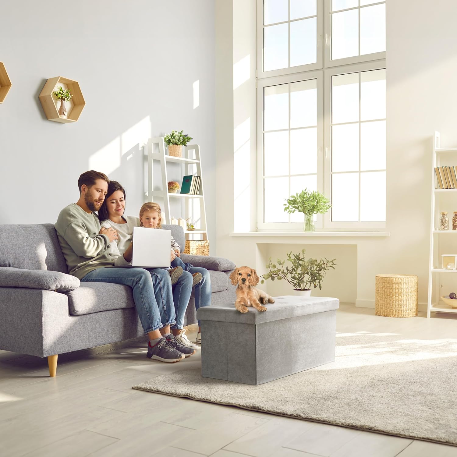 - SUEDE STORAGE BENCH/ OTTOMAN CHEST (GRAY) — Add storage and seating with a beautiful rectangular shaped folding bench, perfect for storing a variety of items— Tuck away linens, games, books, blankets, accessories, and more to maximize your space with contemporary style