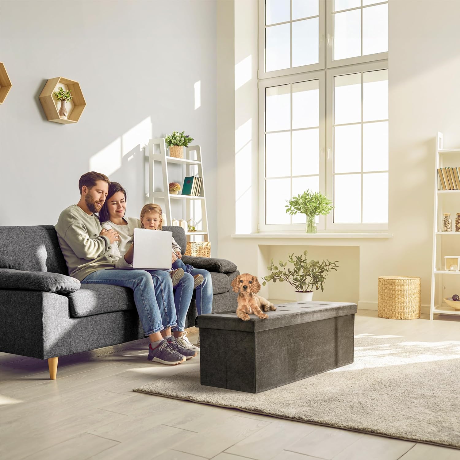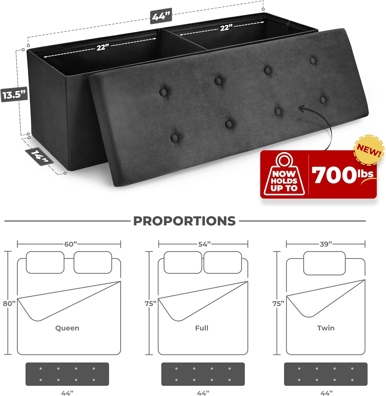 Sorbus Storage Ottoman Bench – for Living Room, Hallway, End of Bed, Bedroom Bench 43 in Large Folding Chest Seat Trunk w/Cover – Blankets, Coffee Table, Foot Rest– Tufted Velvet Linen Fabric (Black)