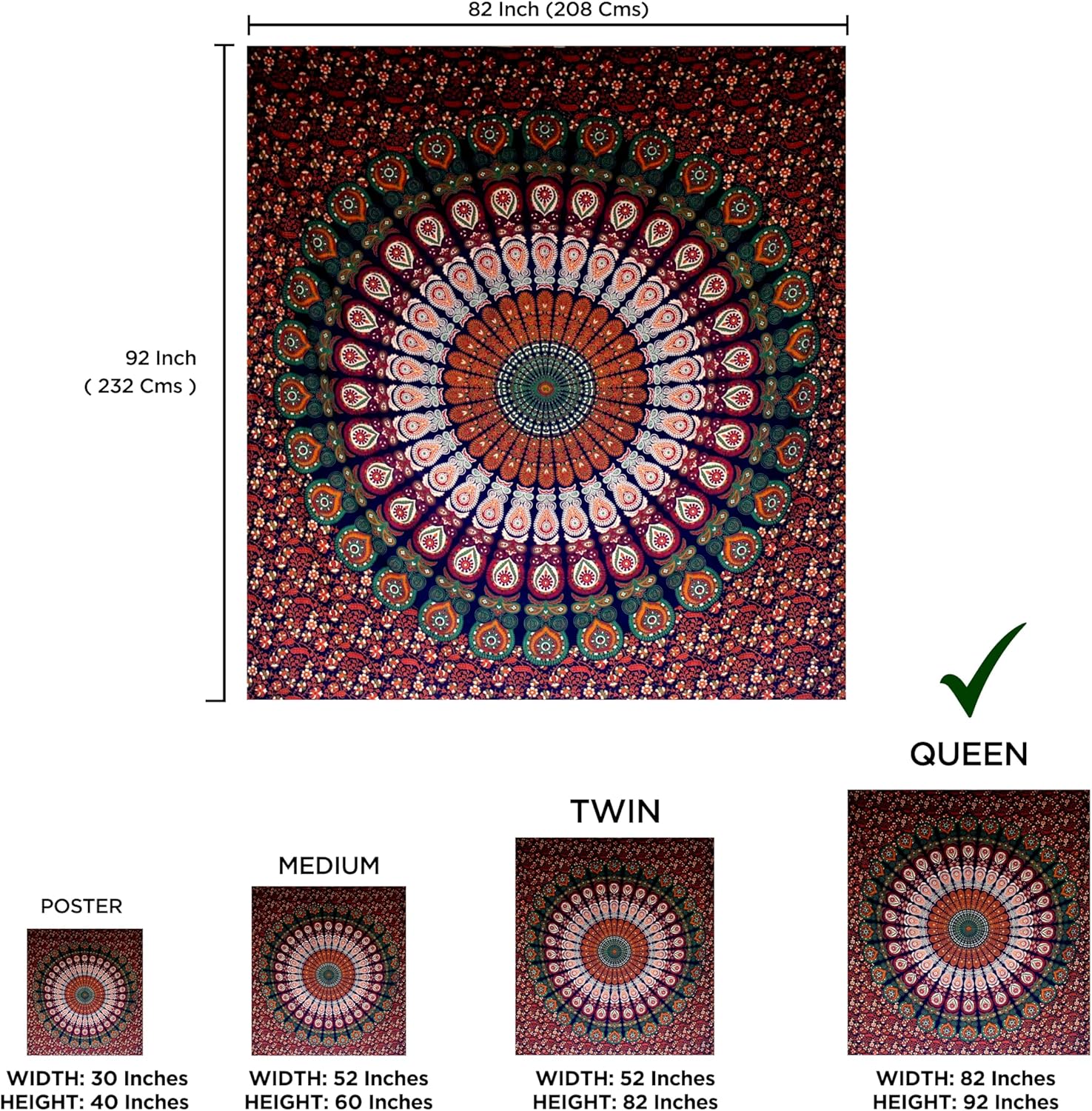 - MATERIAL & SIZE : Mandala boho Tapestry is made of 100% cotton fabric, made and printed in India, With delicate hand sewing, easy to hang, the edges are neat and finished and used for both indoor and outdoor purpose, size QUEEN 210 X 220 CMS.