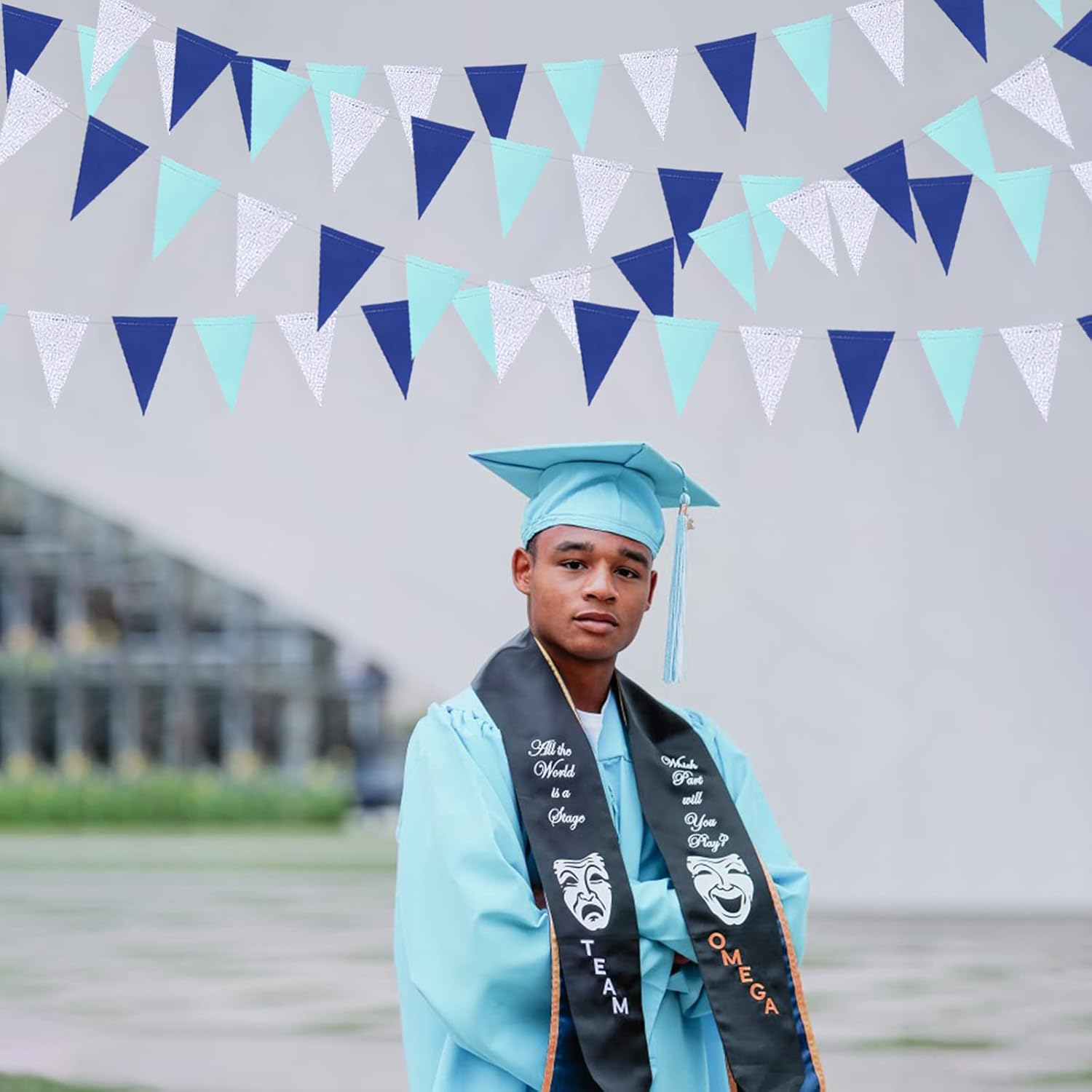- 💙PACKAGE CONTAINS- 3 string of navy blue sliver triangle banner,each string is 10 feet/3 meters with 26 pieces triangular flags,so total is 9 meters = 30 feet with 78 pieces flags. Size of each flag:14cm x 9cm/5.5" x 3.5" (L x W).
