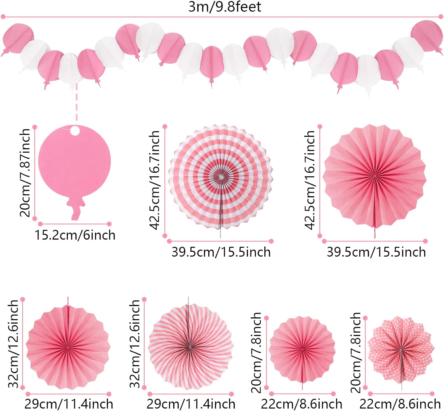 - 【What you will get】6 x paper fans, 8 x paper pompoms, 4 x paper hollow fans, 1 x paper hot air balloon garland( Color: Pink and Rose Red