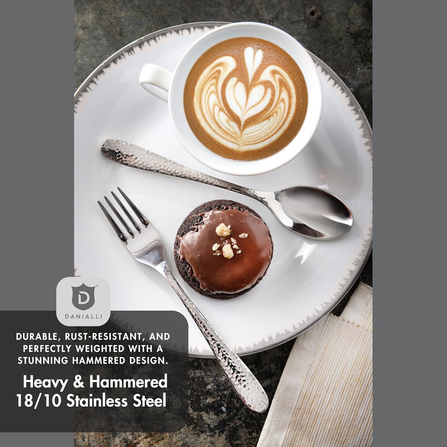 - Feel the Craftsmanship – Crafted with a hammered texture and heavy 18/10 stainless steel, each piece offers a solid, well-balanced grip you’ll notice the moment you hold it.