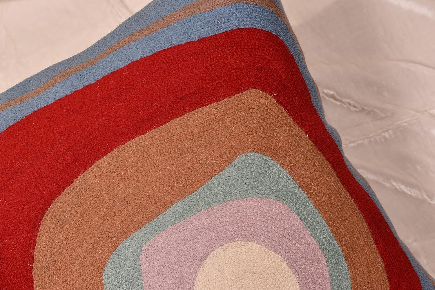 - π MODERN THROW PILLOW COVER - HAND EMBROIDERED: These colorful decorative modern throw pillow covers are inspired by the art of Kandinsky and are hand embroidered in soft wool to perfection, stitch by stitch, by the finest artisans, creating an extraordinary all modern abstract pillow for your home decor. A close-up view of this all modern accent pillow cover allows you to see the amazing fine chain-stitch hand embroidery. A perfect modern sofa pillow for your contemporary couch.