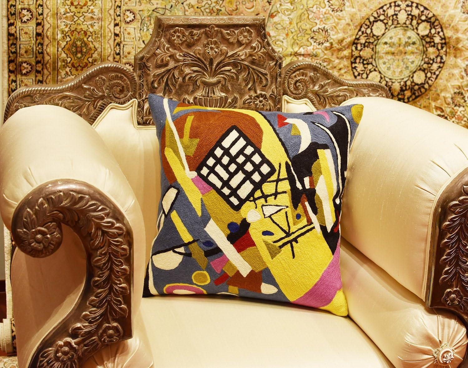 Kandinsky Modern Pillow Cover Frame Gray Abstract Pillowcase Grey Modern Chair Cushion Contemporary Outdoor Pillows Kids Room Handembroidered Wool Size 18x18