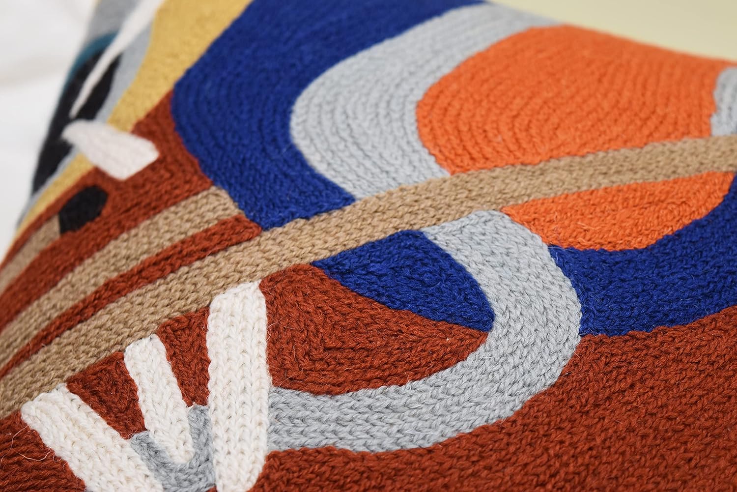 - π PREMIUM NATURAL MATERIALS: Our soft all modern decorative pillows are made of premium organic natural materials. Front - Hand embroidery: 100% Soft Wool, Backing: 100% Cotton Canvas. This needlework embroiderd accent pillow can be used as a mid century modern pillow or as a modern farmhouse pillowcase. Our unique Kandinsky inspired abstract pillows are truly hand embroidered, breathable, soft and comfortable, and easy to care.