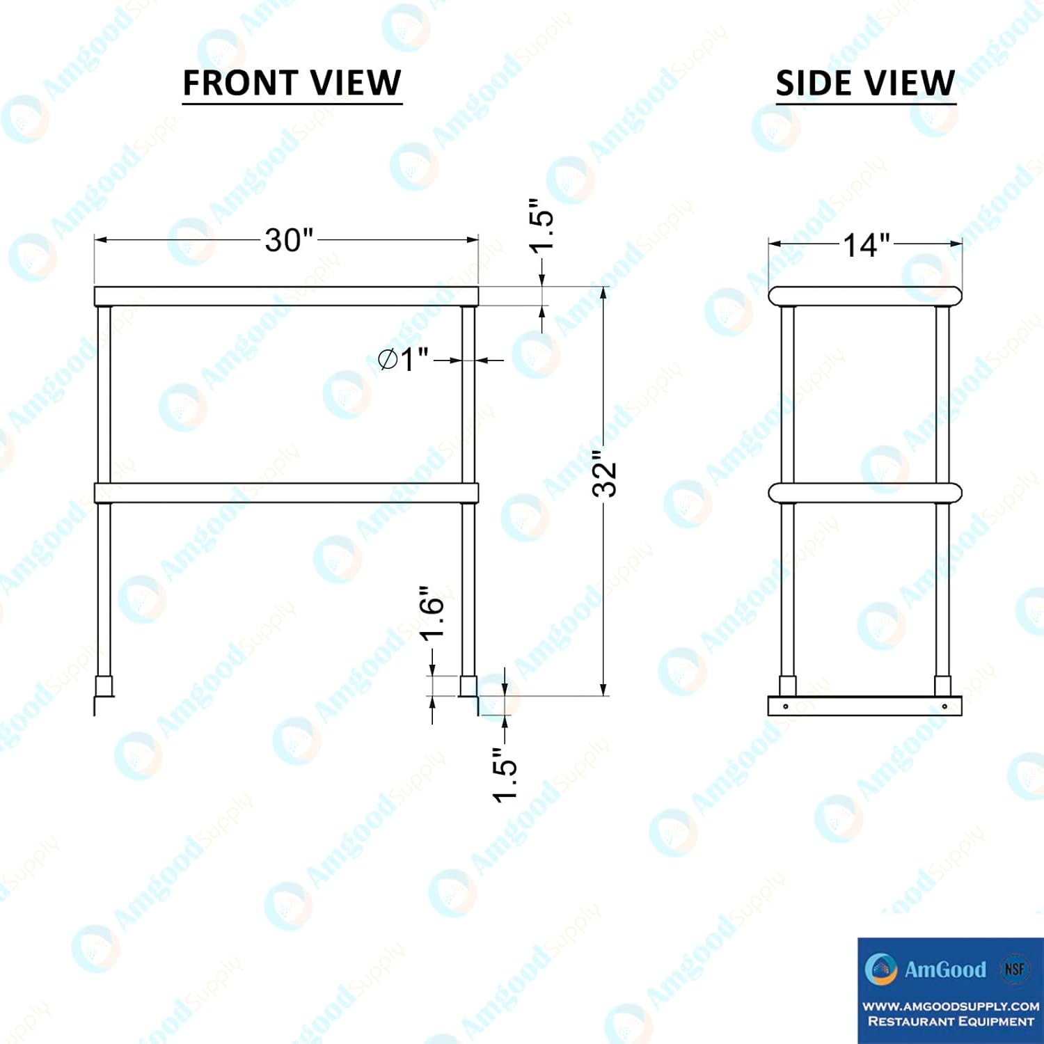AmGood Double OverShelf Stainless Steel NSF - Many (30" Long x 14" Deep)