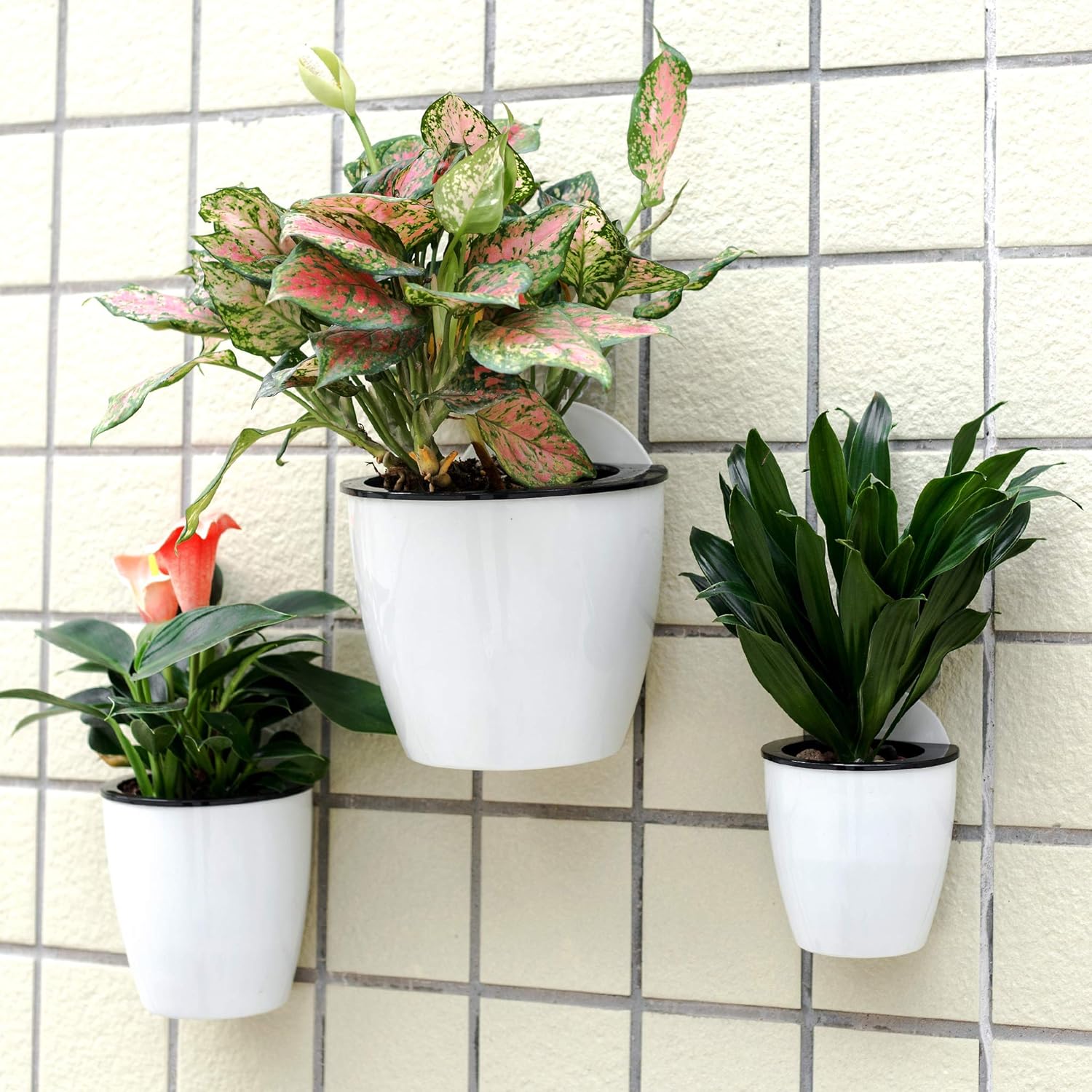 - Wall Dรฉcor: Wall decor planter pots holder with polishing processing modern design, sleek clear white, fancy slick surface, attractive looking, simple and artistic, will nicely compliment your home, office, kitchen, garden, lawn and patio. Vertical living wall planter, wall mounted indoor outdoor hanging flower pots, lazy self watering flowerpot, wall hang / window boxes.