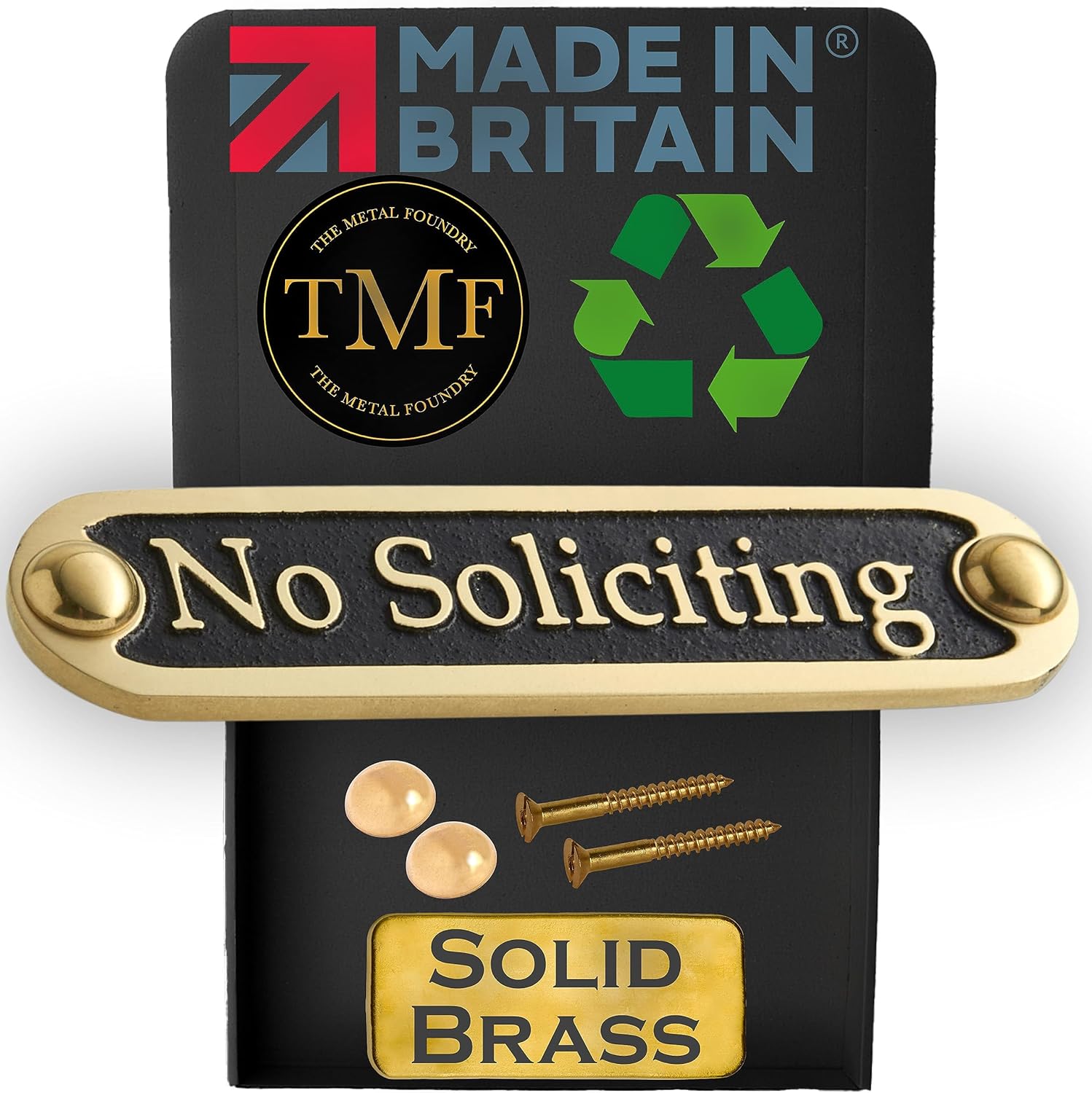 - Then this is the perfect item for you! With a No Soliciting solid brass door sign unwanted callers will know that they are actually not wanted and will avoid you to live another day and pester some other poor unfortunate sole whom did not invest in one of our No Soliciting signs.