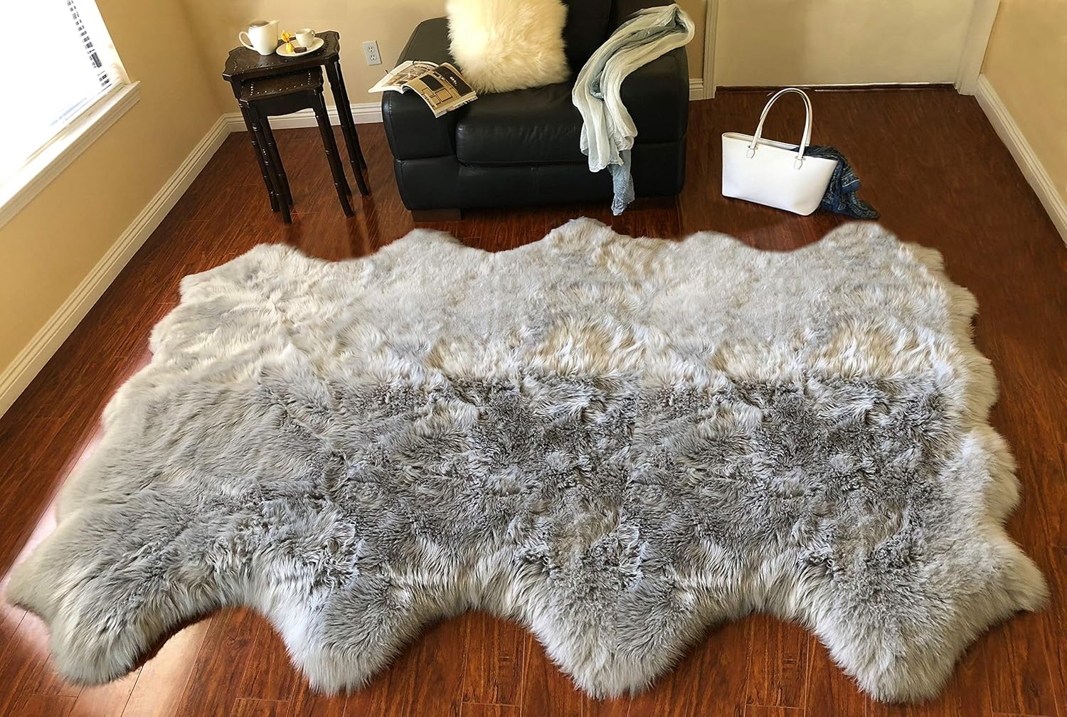 LAMBZY Faux Sheepskin Hypoallergenic Free Shape Silky Shag Rug, Luxury Shaggy Silky Plush Carpet for Bedrooms Rugs Living Room Kids Rooms Sofa Floor Rugs (Octo 8 Pelts 6'x8', 180x240cm, Grey)