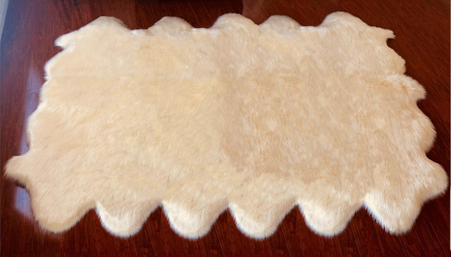 - MULTIPURPOSE DESIGN REAL SHEEPSKIN RUG: The sheepskin rugs are multipurpose and used as seat covers rug, couch pads, and area carpets. The stain-resistant, latex-free rug is designed for daily indoor use faux fur that is a super soft material rug under your feet. This free shape silky shag rug that works with a wide variety of decors great addition for kid’s room rug.