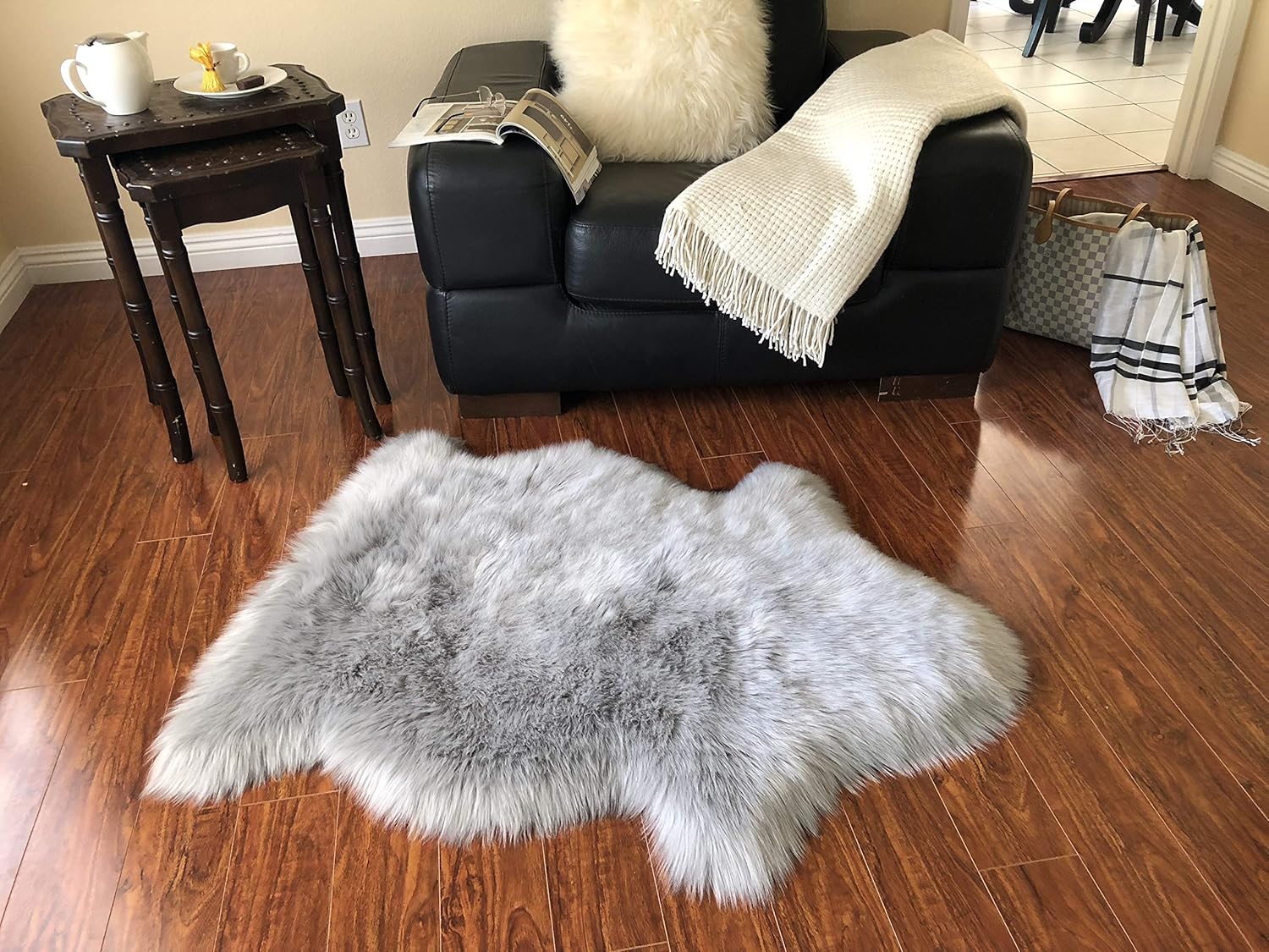 - MULTIPURPOSE DESIGN REAL SHEEPSKIN RUG: The sheepskin rugs are multipurpose and used as seat covers rug, couch pads, and area carpets. The stain-resistant, latex-free rug is designed for daily indoor use faux fur that is a super soft material rug under your feet. This free shape silky shag rug that works with a wide variety of decors great addition for kid’s room rug.