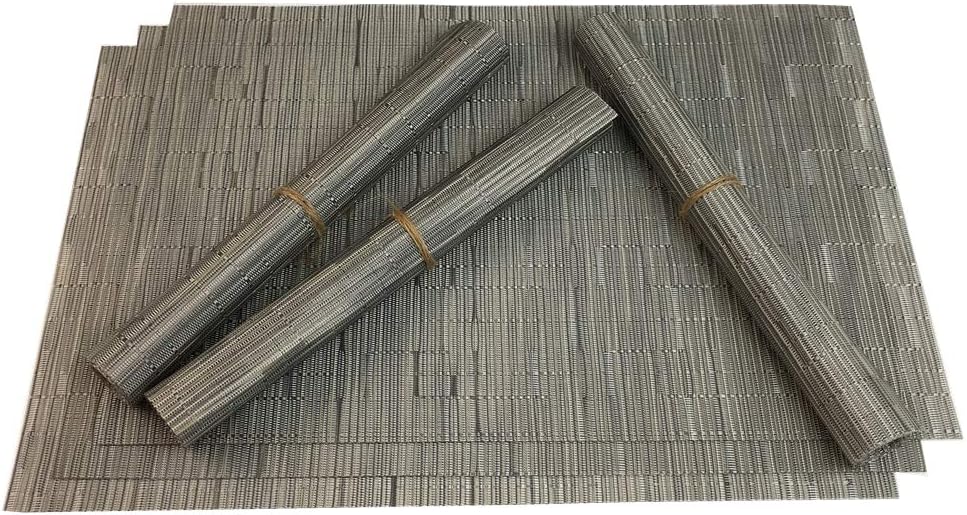 Red-A Placemats Set of 6 for Dining Table Heat-Resistant Washable Place Mats Woven Vinyl Kitchen Table Mats Easy to Clean,Silver Grey