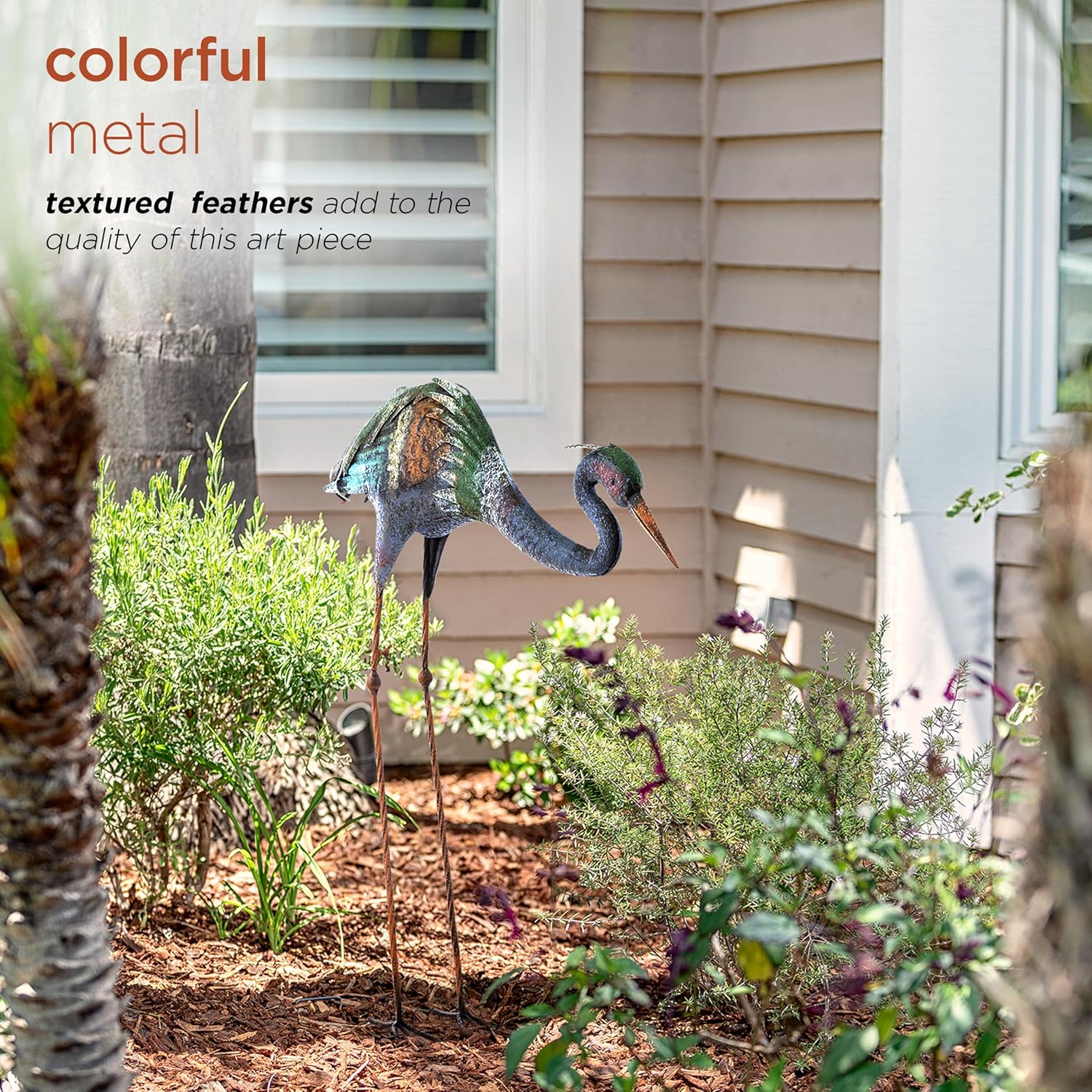 - CRANE STATUE: Colorful rustic crane looks great in your yard or garden, or placed on your deck or porch