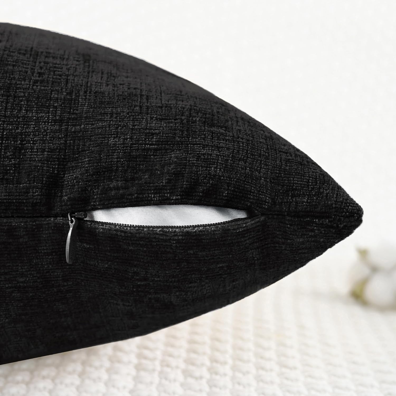 CaliTime Throw Pillow Covers Decorative 18 X 18 Inches Pack of 2 Cozy Chenille Cushion Cases for Couch Sofa Bed Living Room Home Black