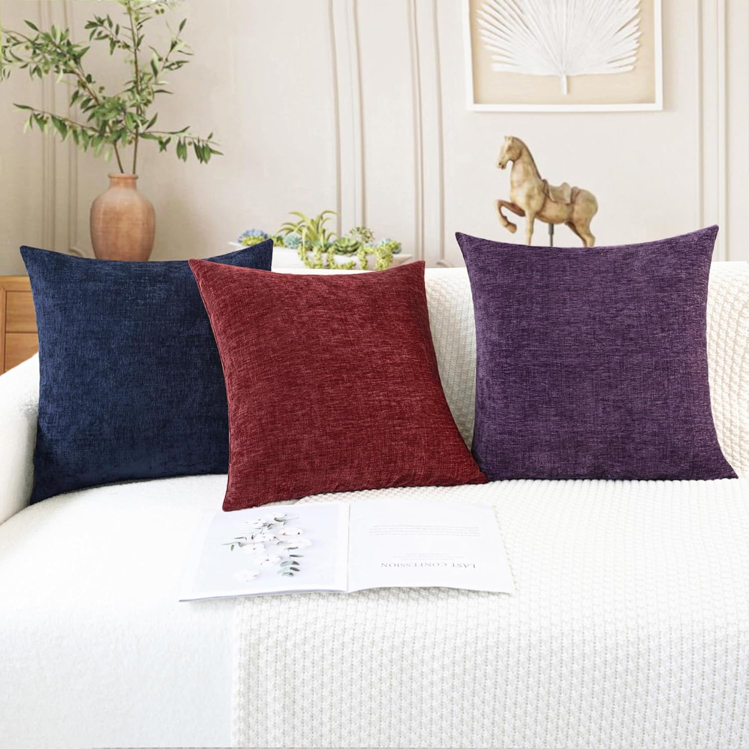 CaliTime Throw Pillow Covers Decorative 16 X 16 Inches Pack of 2 Cozy Chenille Cushion Cases for Couch Sofa Bed Living Room Home Navy Blue
