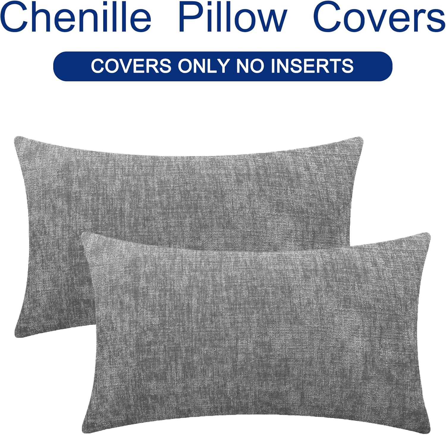 CaliTime Throw Pillow Covers Decorative 12 X 20 Inches Pack of 2 Cozy Chenille Cushion Cases for Couch Sofa Bed Living Room Home Medium Grey