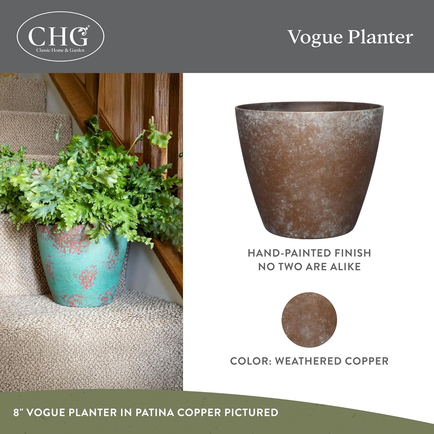 Classic Home and Garden Vogue Planter Pots w/Pottery Quality Finish - Modern Indoor & Outdoor Flower Pots - UV-Resistant Porch Planters - Decorative Pot for Flowers & Herbs (8” Weathered Copper)