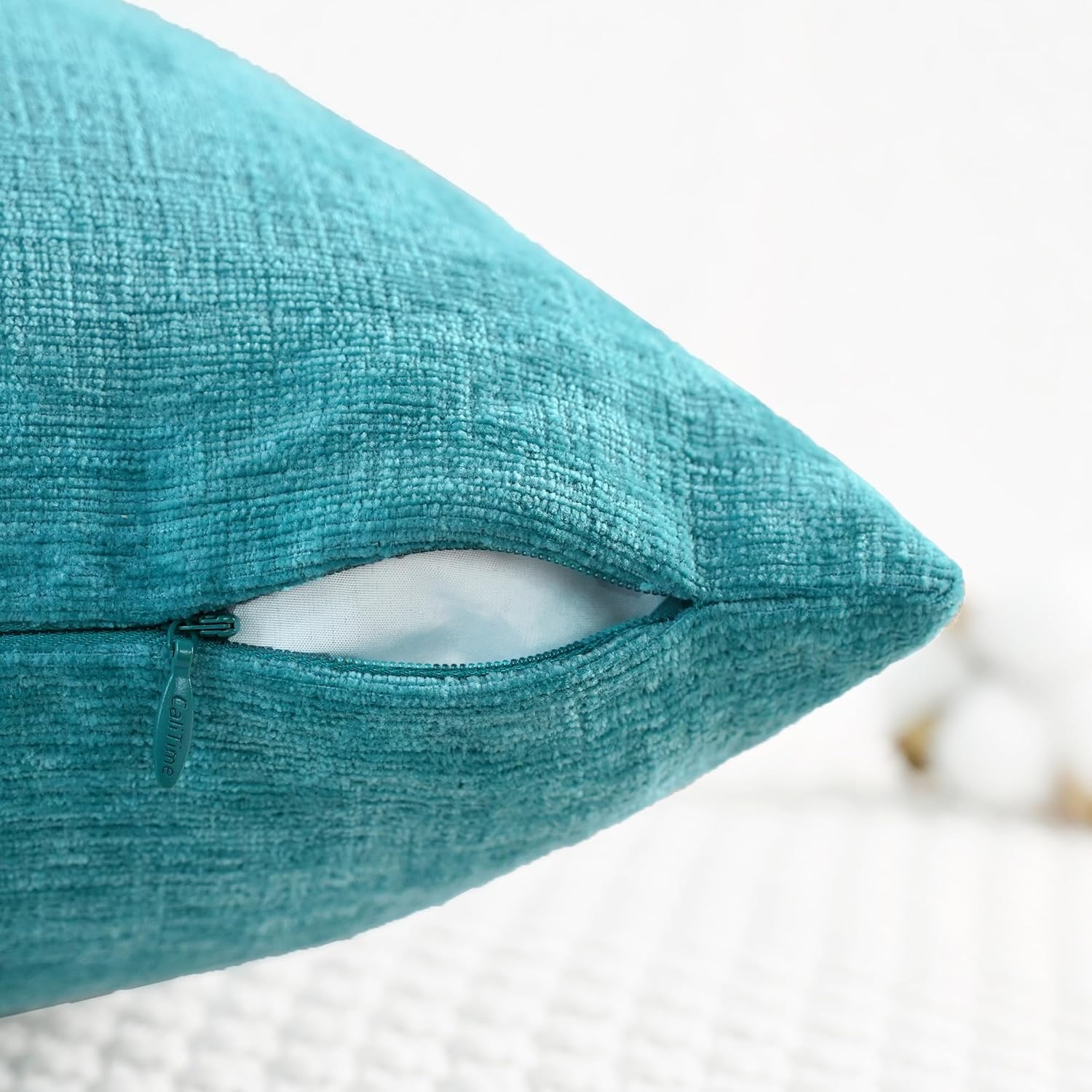 CaliTime Throw Pillow Covers Decorative 18 X 18 Inches Pack of 2 Cozy Chenille Cushion Cases for Couch Sofa Bed Living Room Home Lake Blue