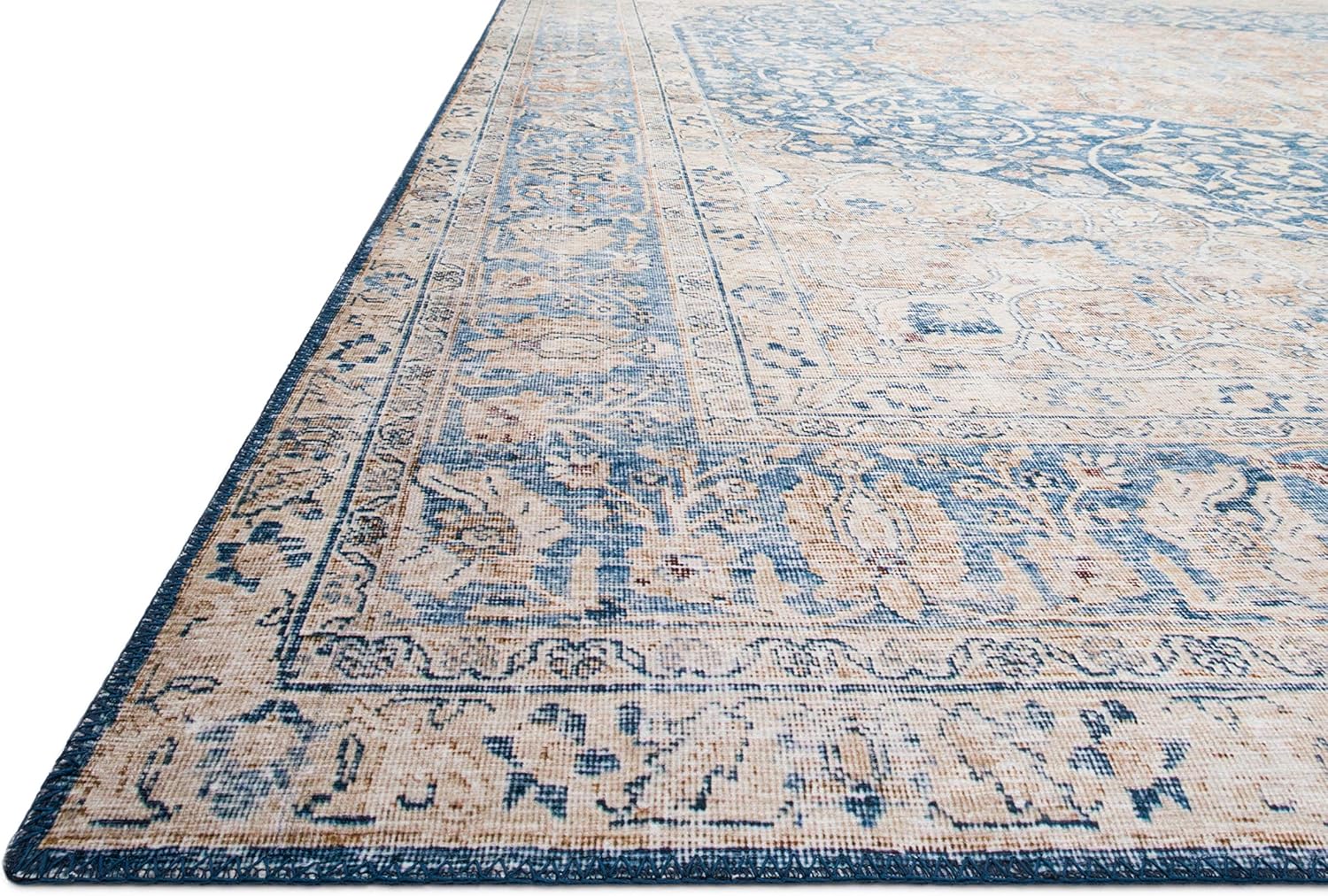 Loloi Layla Collection LAY-07 Blue/Tangerine 2'-6" x 7'-6" .13" Thick Runner Rug, Soft, Durable, Vintage Inspired, Distressed, Low Pile, Non-Shedding, Easy Clean, Printed, Living Room Rug