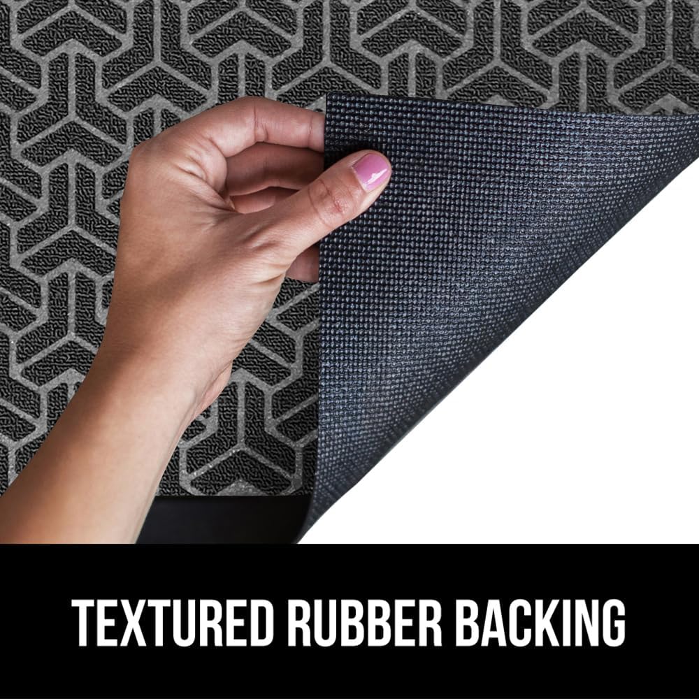GORILLA GRIP 100% Waterproof All-Season WeatherMax Doormat, US Designed Natural Rubber, Stain and Fade Resistant, Low Profile Indoor Outdoor Door Mats, Easy Clean Patio Mat, 17x29, Slate Geometric