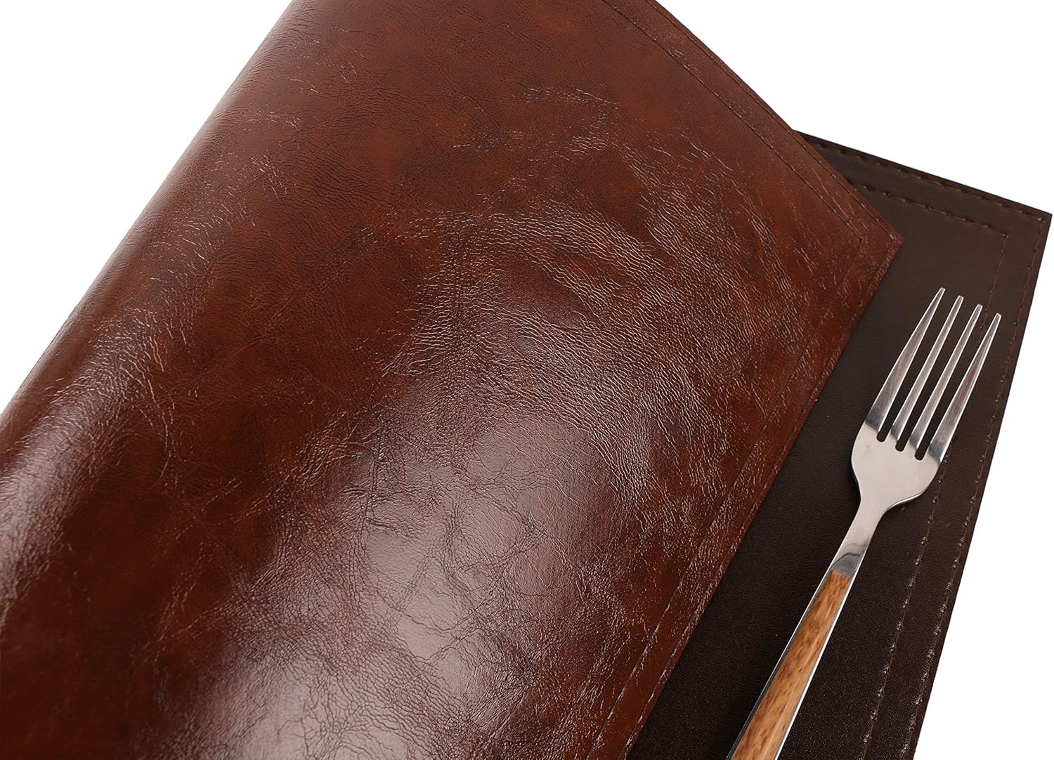 Waterproof PU Placemats, Faux Leather Dining Table Mat, Set of 4, Easy to Wipe Off Scrub Vinyl Mat, Heat & Stain Resistant for Office Conference Table, Home Decor