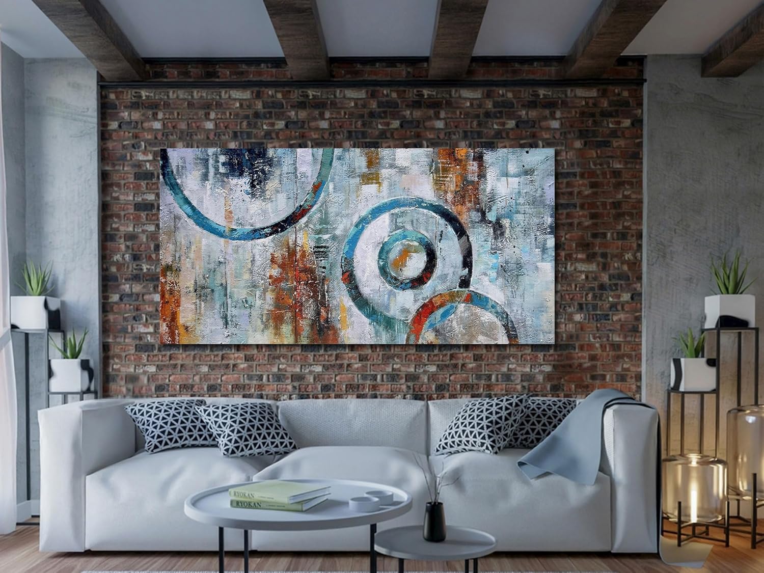 - Abstract wall art size: 48inx24in(120cmx60cm) gallery wrapped, it's our original design with hand-painted textured. The vibrant colors and intricate details of this piece will bring a sense of tranquility and peace to any room