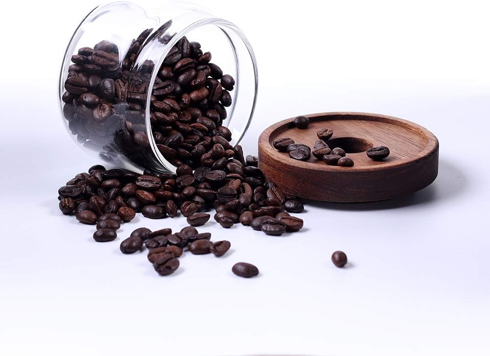 Glass Coffee Containers, 8.5 FL OZ/250 ml Kitchen Serving Food Storage Canister with Sealed Wooden Lid, BPA-Free Clear Glass Jar for Tea Leaves, Powder, Spice(3.06 inch)