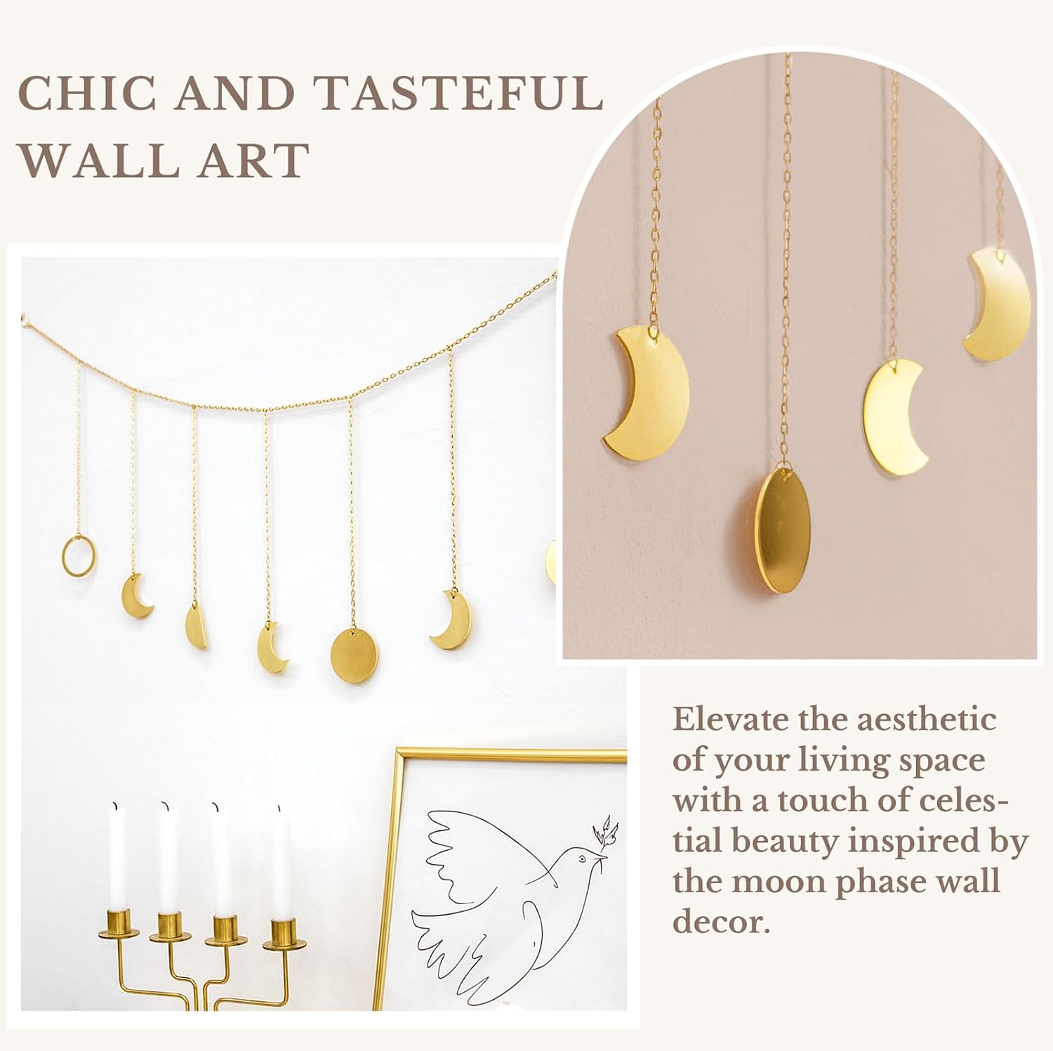- Unique Design: Inspired by the whole changing process of "phase of moon". Hanging it horizontally creates comfort and natural life for your living space, makes you feeling cozy and relaxed after stressed work. Nice ornament adds distinctive flair for home