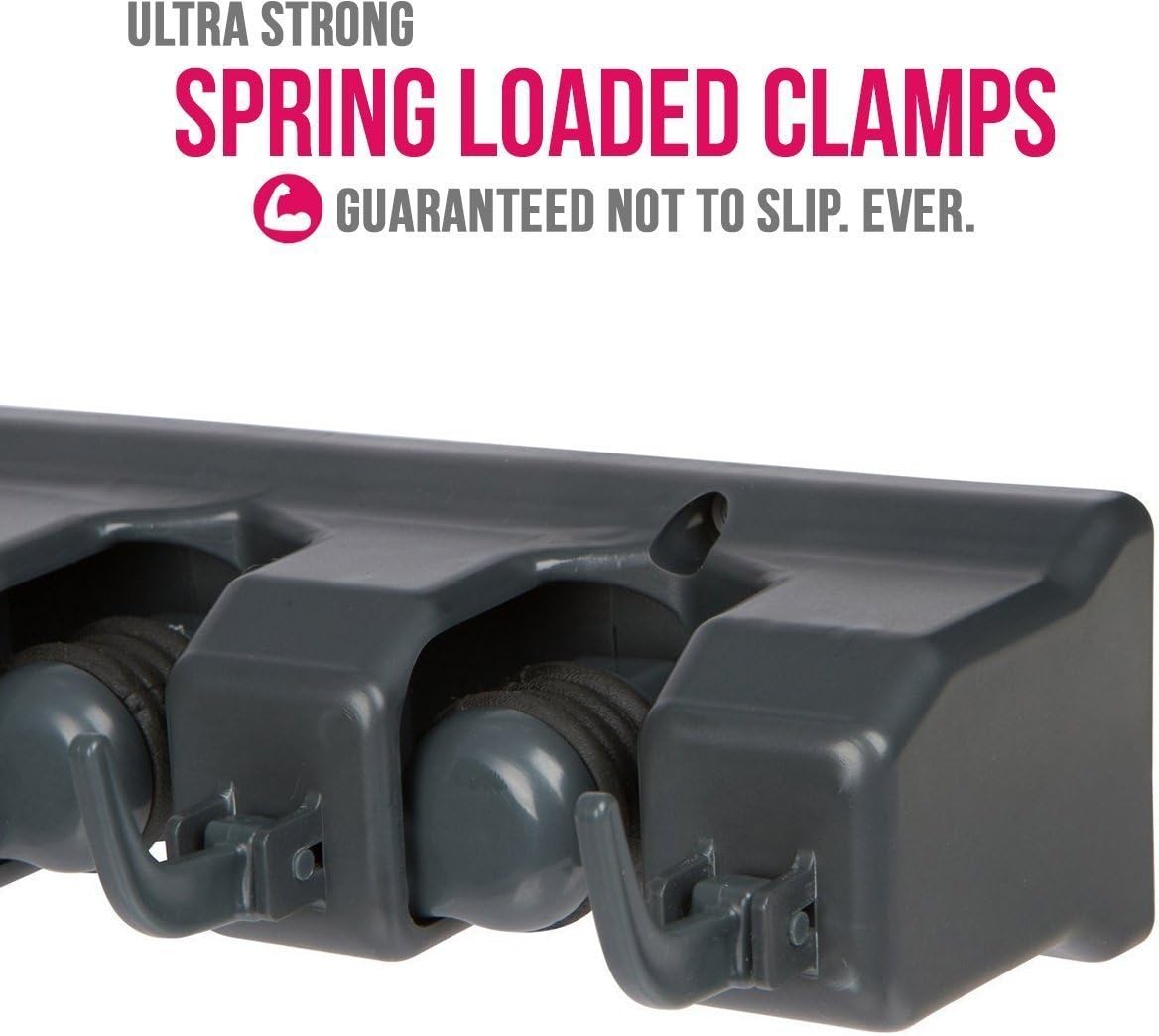 - NO SLIDE, NO MESS – Each commercial grade broom hanger has a 35 pound holding capacity. Thanks to the spring loaded, double rubber gripped slots, the Berry Ave utility hooks can hold anything from wet mops and dirty rakes to baseball bats, without any annoying slipping.