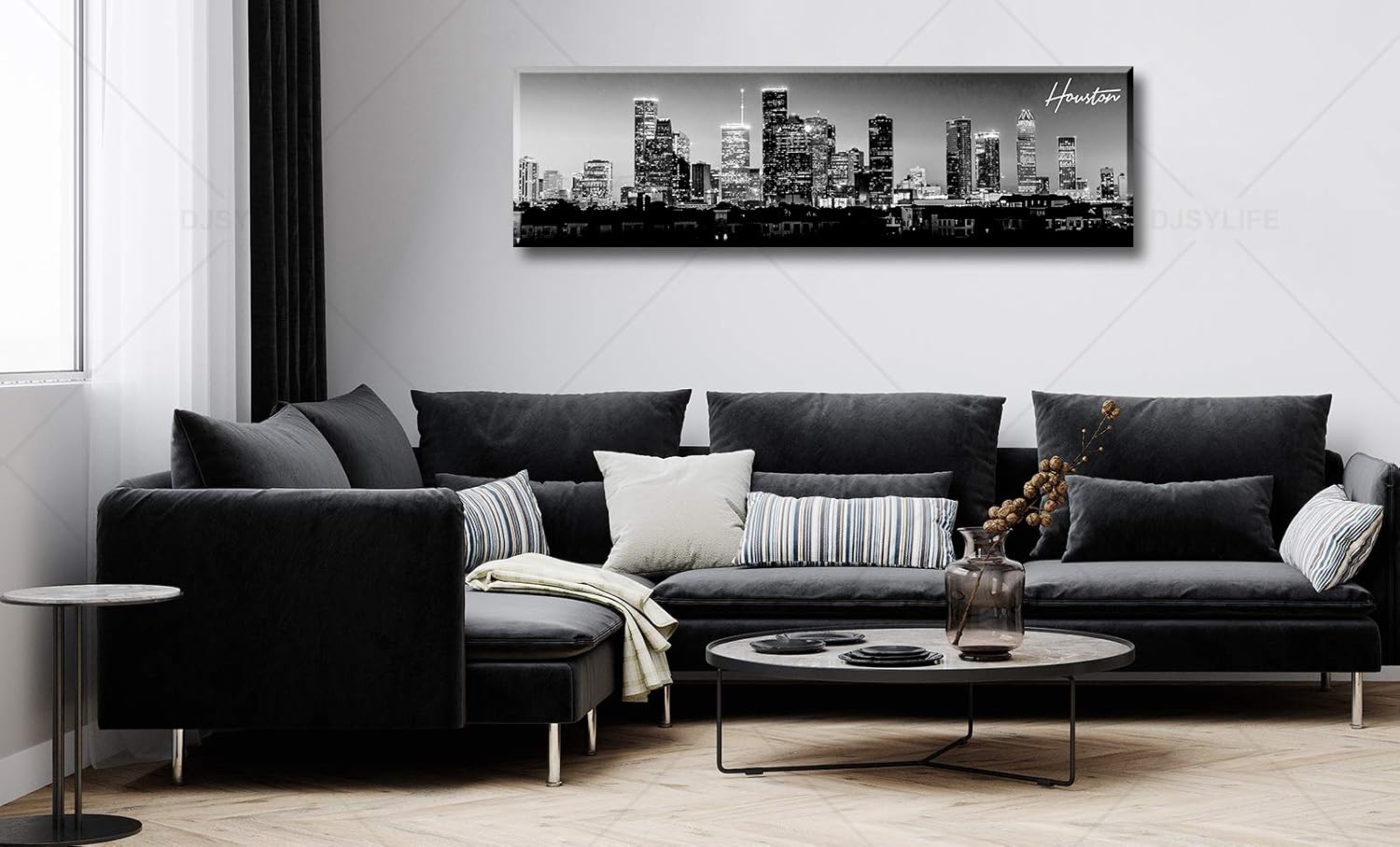 DJSYLIFE Houston Skyline Canvas Wall Art Decor Black & White City Pictures Painting Texas Cityscape Photo Print Artwork for Office Bedroom Living Room Walls Decoration Ready to Hang 13.8"x47.3"