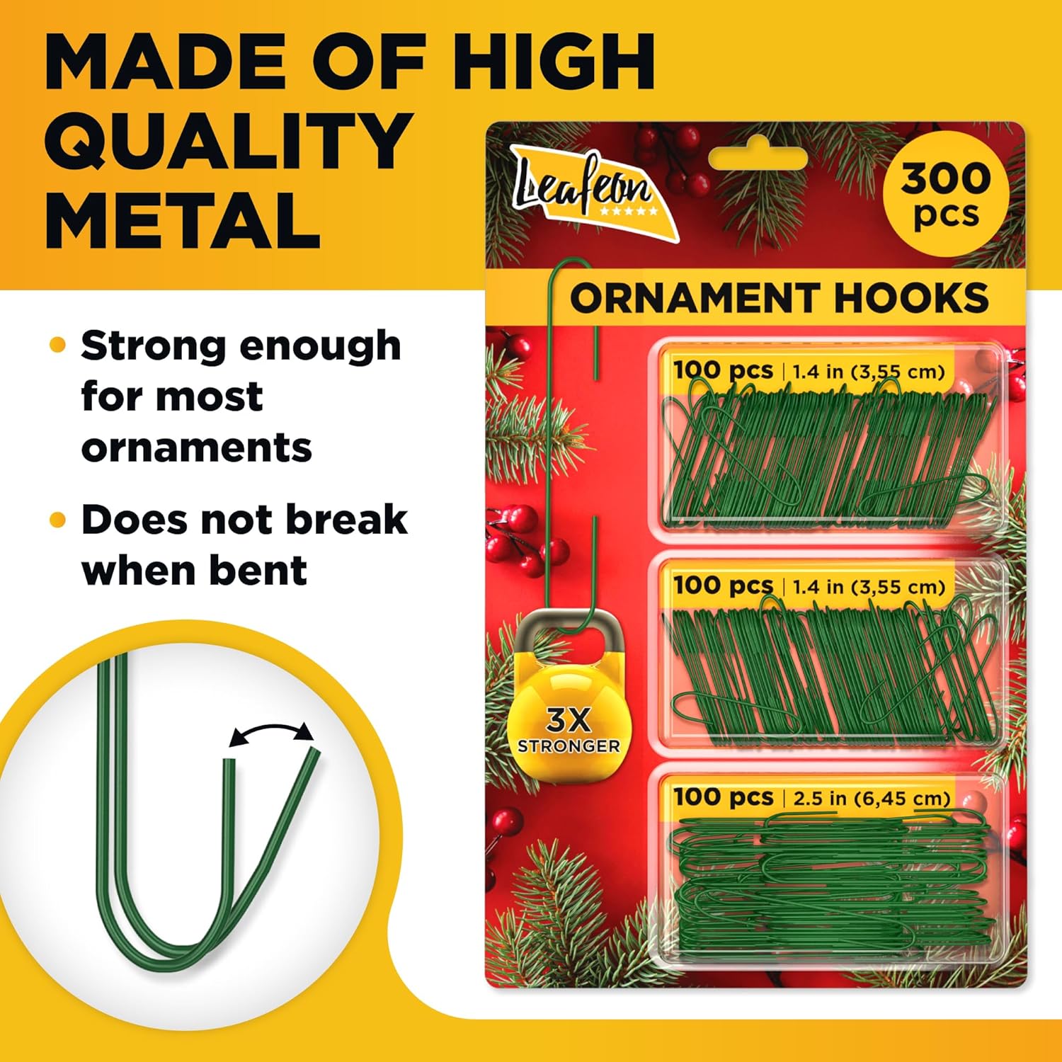 Leafeon 300 Pack Christmas Ornament Hooks for Christmas Tree Decoration β The Best Holiday Ornament Hangers (Green)