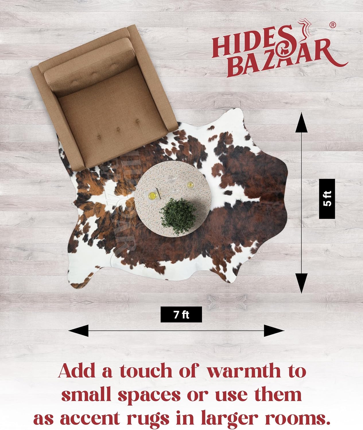 Tricolor Cowhide Rug Classic Brown, Black and White Color Mix, Natural Leather Hide, Area Rug (5x7 ft)