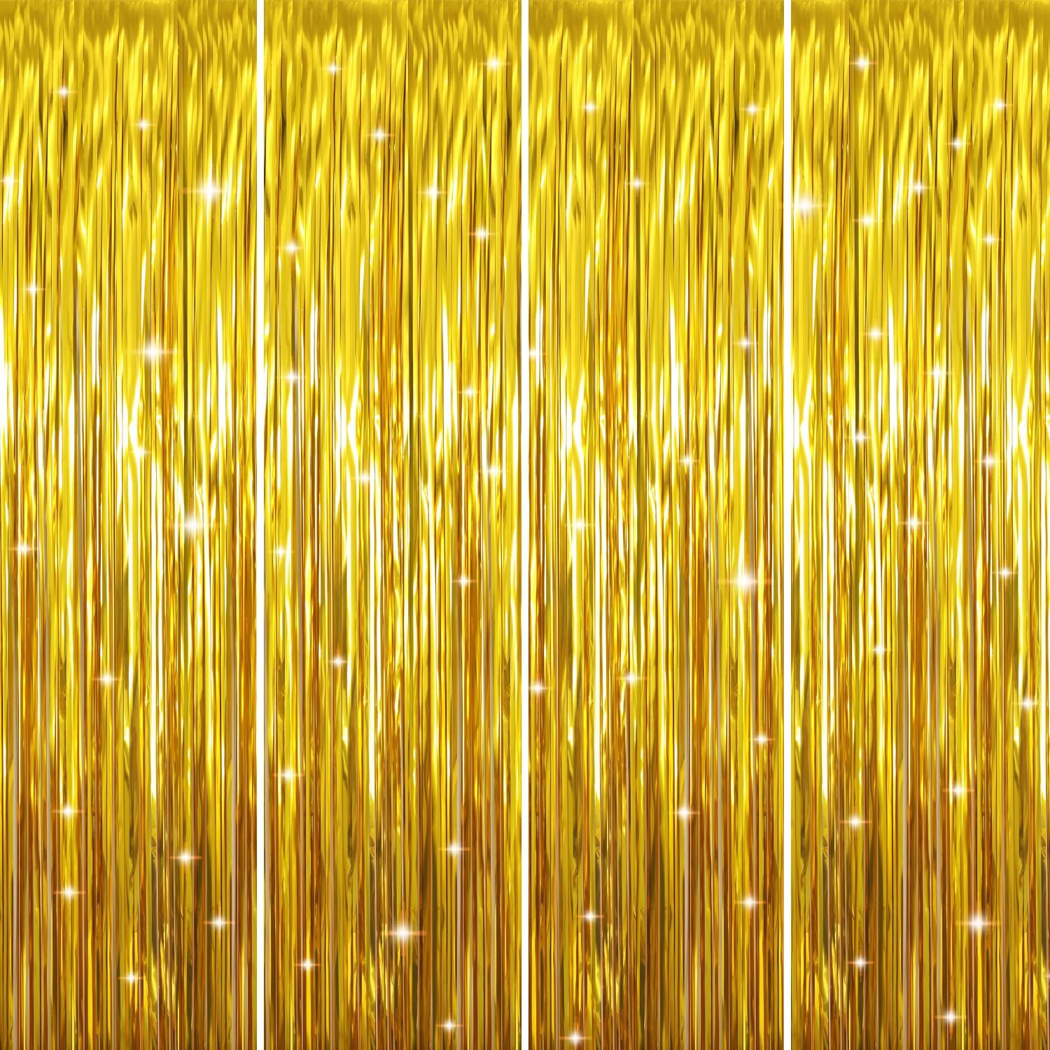 - Package Includes:4 pack gold foil fringe curtain,3.2 ft x9.8 ft each,suitable for hanging on a door or coverage a wall fully