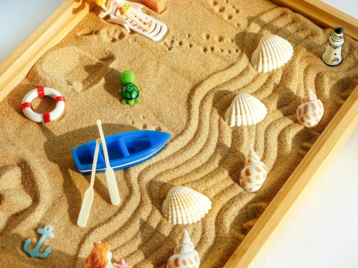 - CALMNESS AND MINDFULNESS - Enjoy the relaxed atmosphere of the beach even during stressful work days with the miniature beach zen garden . The natural sand, shells and conch feel like coming to the beach, breathing the cool sea breeze, comfortable basking in the sun, eliminating troubles and stress, relaxing yourself