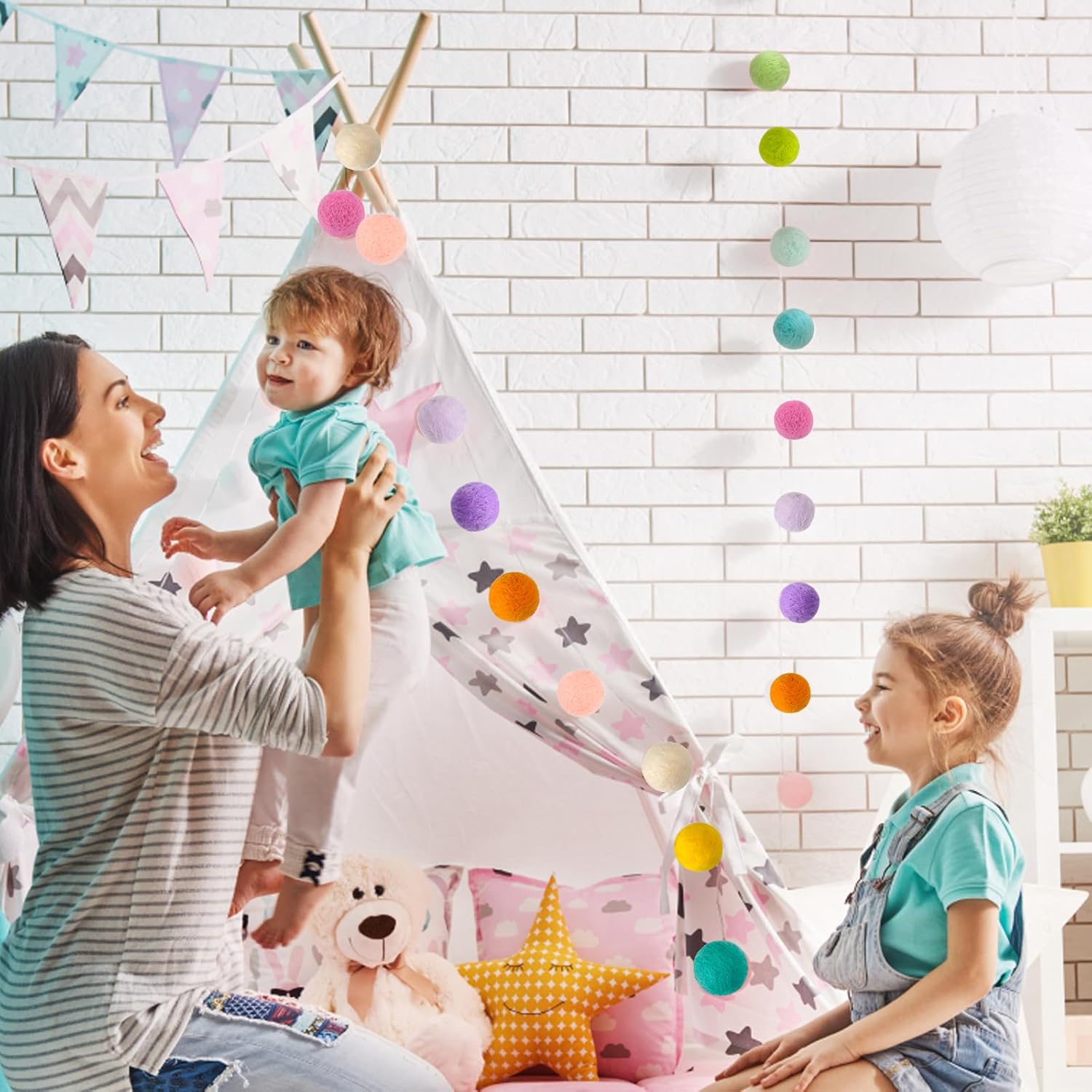 - Pom Pom Garland: This garland is made with 20mm felt balls. 35 balls are hand-stitched to the string. ▶▶Balls are NOT in fixed position in the garland.
