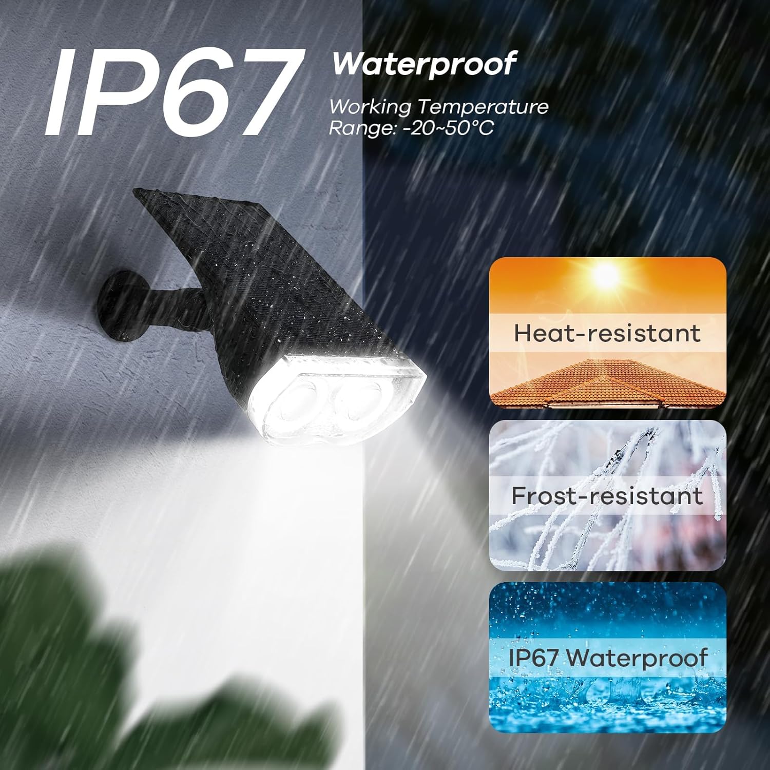 - [Durable & Weatherproof Design] Built with anti-UV ABS material for lasting durability and IP67 waterproofing, these solar landscape lights stand harsh weather conditions, from freezing -20°C winters to hot 50°C summers, ensuring reliable performance year-round